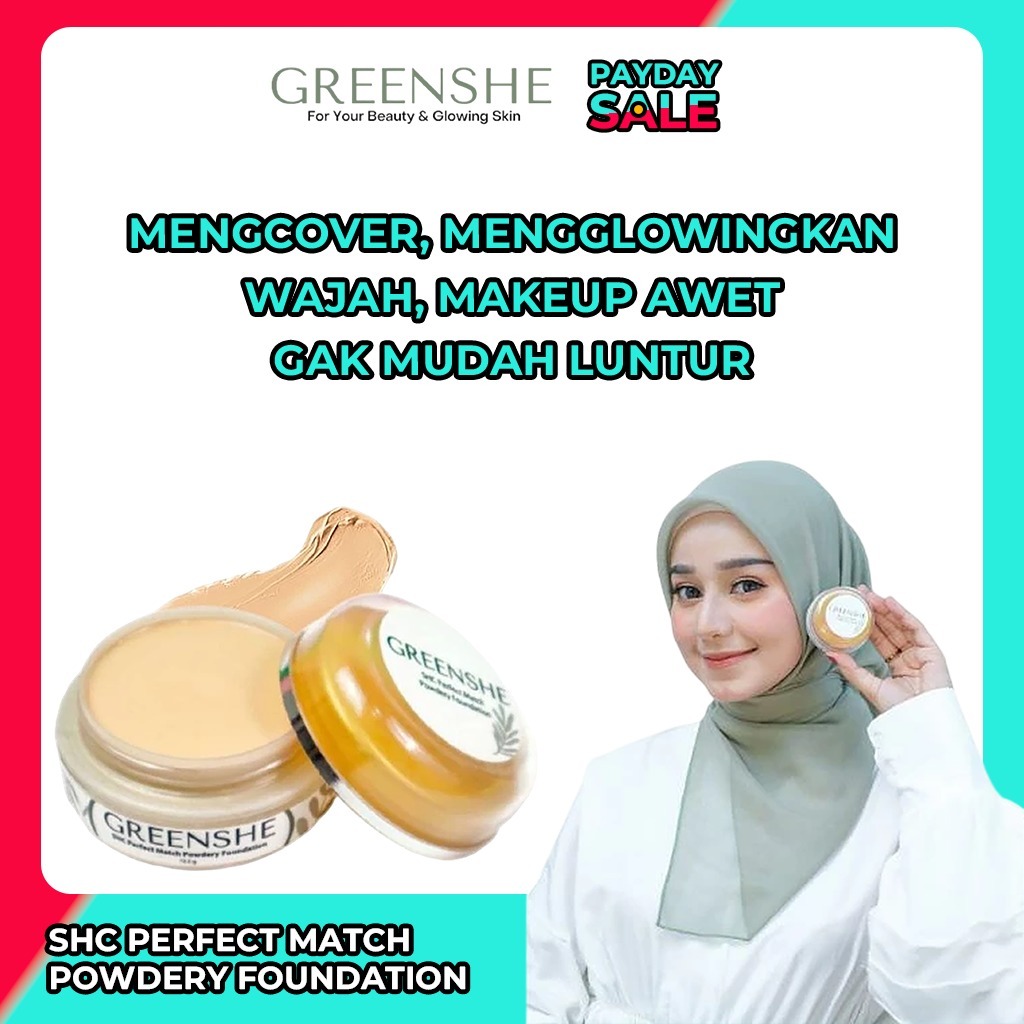 Powdery Foundation | Bedak Shc Greenshe - Bedak Glowing Tahan Lama Waterproof