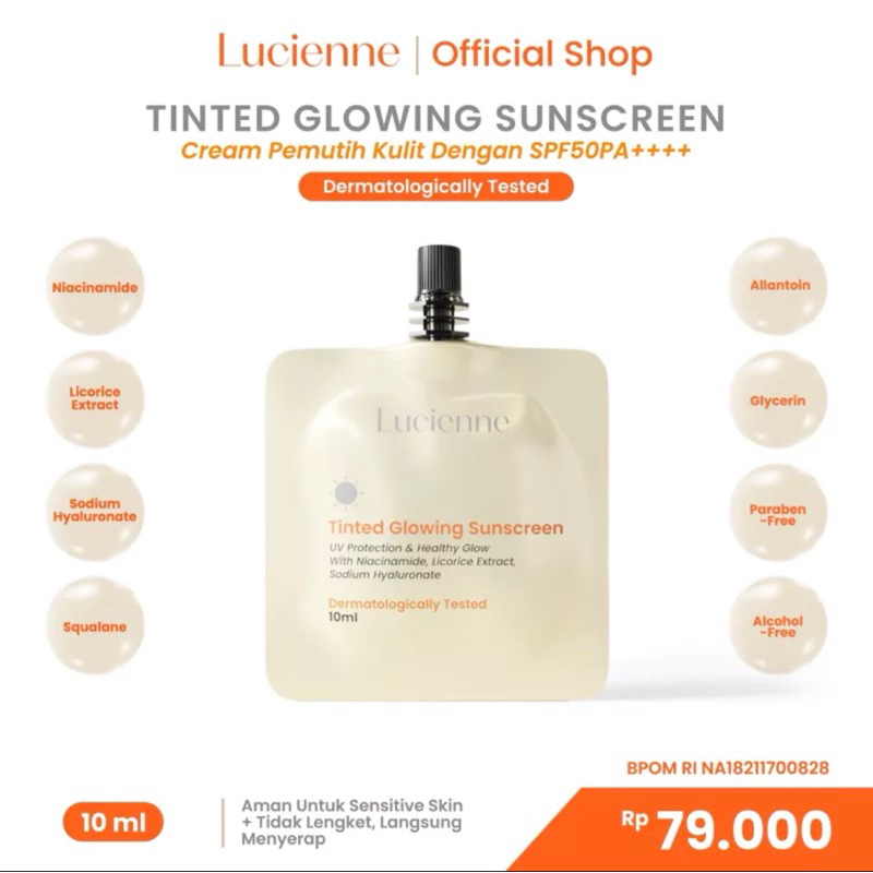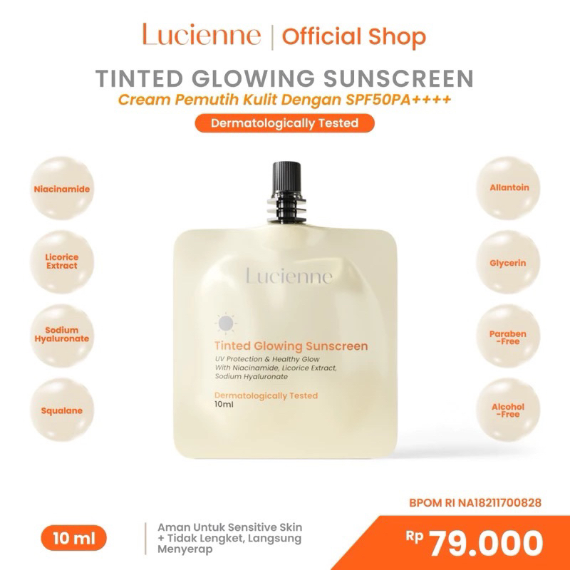 Ready Stock 10Ml Tinted Glowing Sunscreen Lucienne Bpom Sunscreen Spf 50 Pa++++