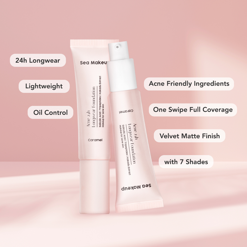 Sea Makeup Acne 24H Longwear Foundation – Foundation Tahan Lama Full Coverage Dengan Salicylic Acid, Tripeptides & Kakad