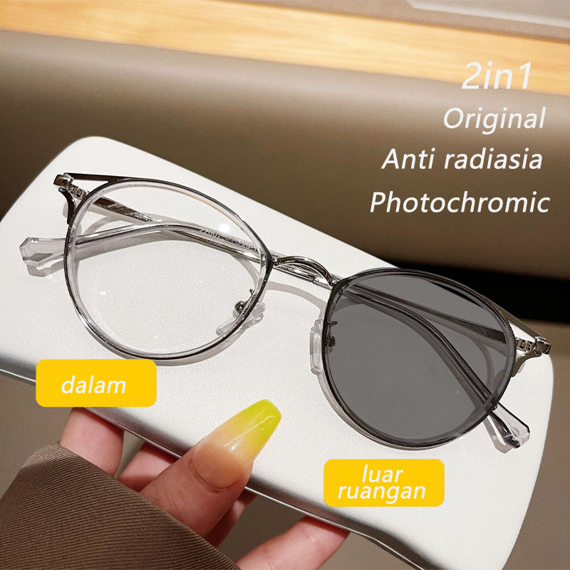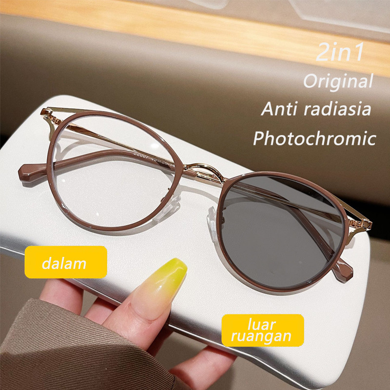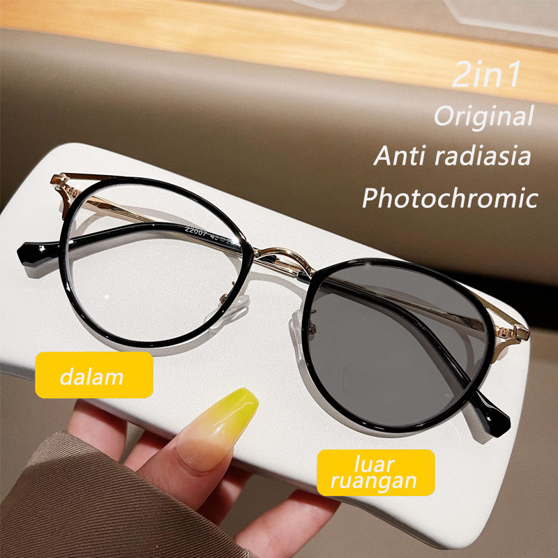 kacamata photochromic anti radiasia bulat cat eye frame lensa wanita