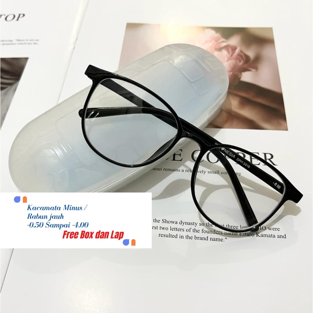 Kacamata Minus Wanita dan Pria Ukuran 0.50 Sampai 4.00 Free Box dan Lap