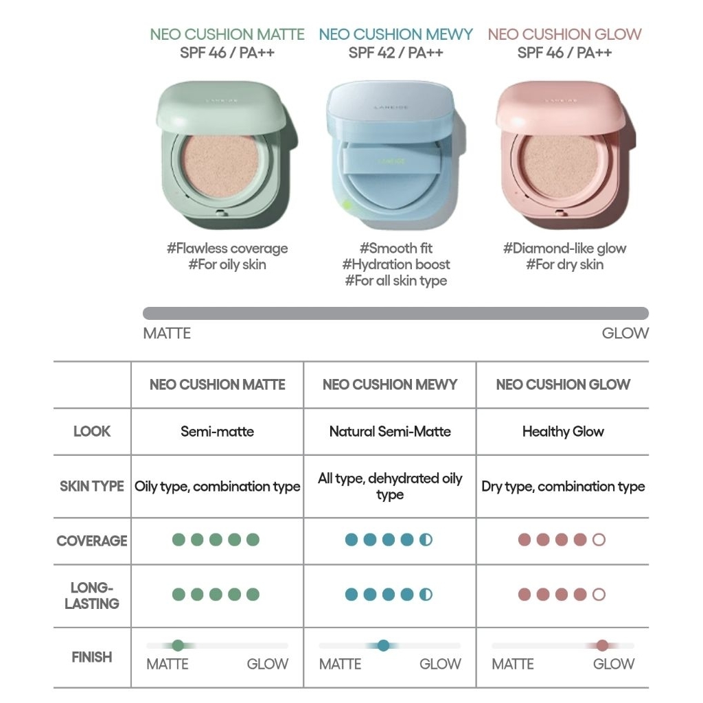Laneige Neo Cushion Matte 15G / Laneige Neo Cushion Glow 15G / Laneige Neo Cushion Mewy 15G
