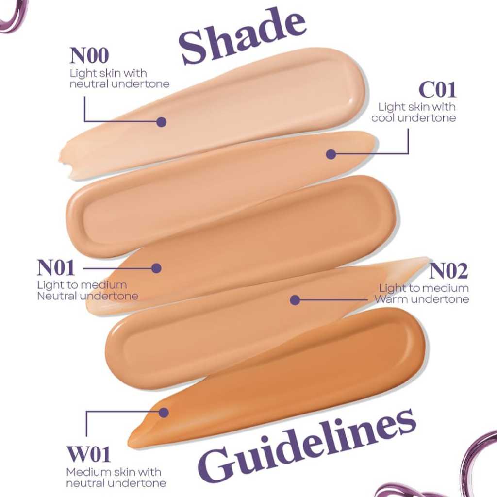 Z3A53 - SkinTint C01, Z3A52 - SkinTint N00, Z14B13 - SknTint W01, Z14B42 - SknTint N01, Z14A47 - SknTint N02