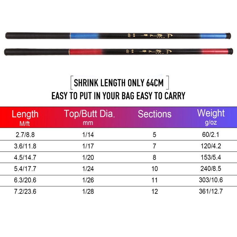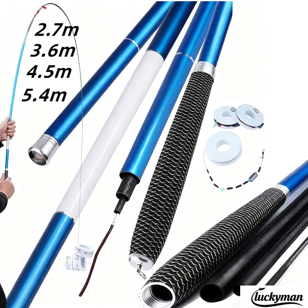 LUCKYMAN 2.7m 3.6m 4.5m 5.4m 6.3m 7.2m Joran Tegek Fishing Rod Carbon Tegek Panjang Fishing Pole Fishing Float Set Portabel Teleskopik Pancing
