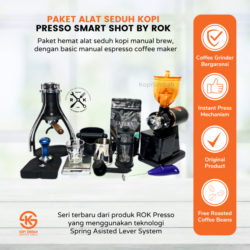 Paket Brewing SMARTSHOT by ROK Presso With Mesin Coffee Grinder Alat Seduh Pembuat Kopi Espresso