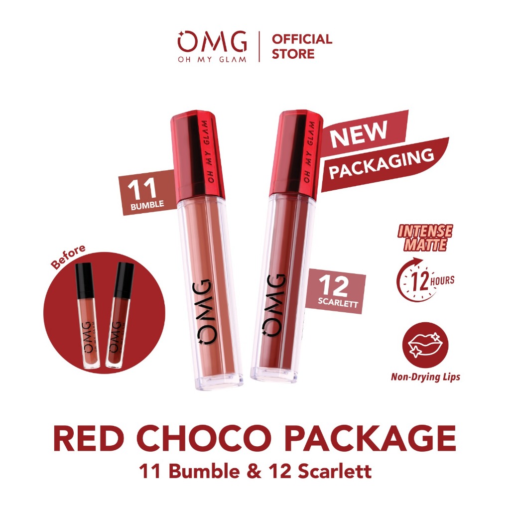Omg Oh My Glam Mattelast Lip Cream Red Choco Bliss Ombre - 11 Bumble & 12 Scarlet (Lip Cream Matte Dengan Warna Intense,