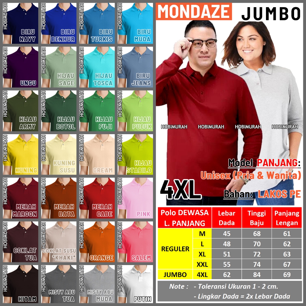 Kaos Polo PANJANG JUMBO 4XL 5XL - Pria Wanita | Kerah Polos | Mondaze