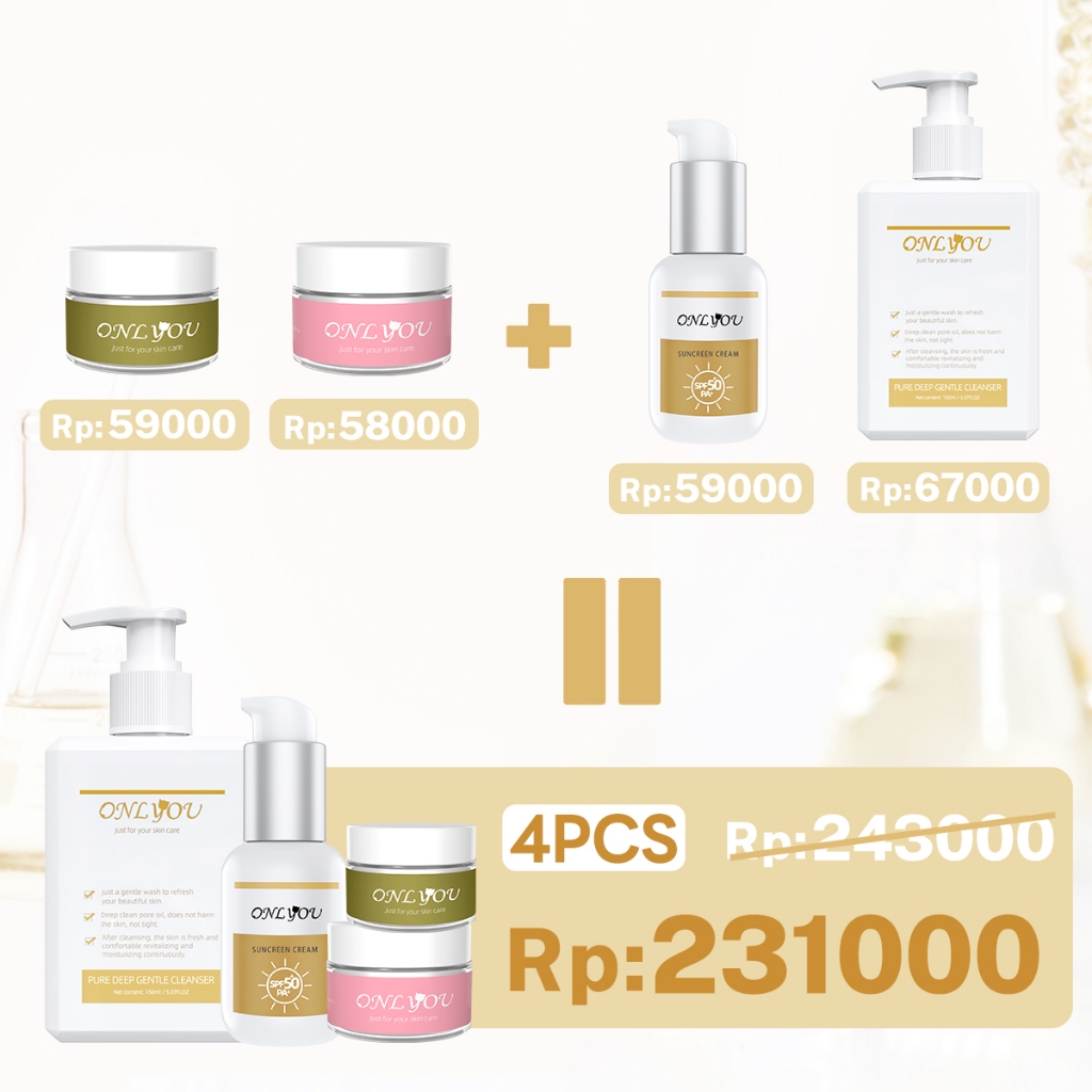 Onlyou Makeup 4Pcs Pakte Instant Brightening Tone Up Cream 50G & Sunscreen Cream Spf50+ Pa+ Wajah Uv Sunblock 50G & Whit