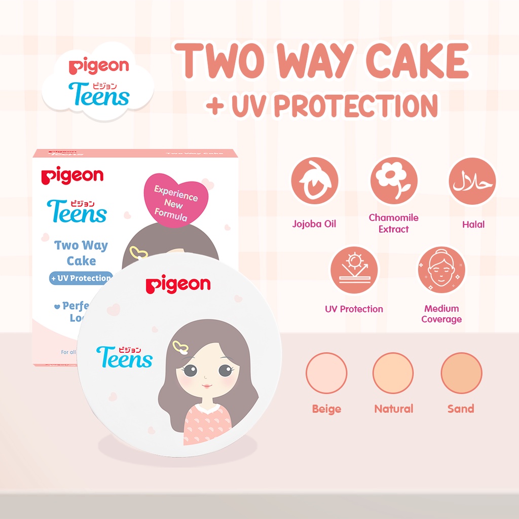 Pigeon Teens Two Way Cake | Bedak Foundation Padat Remaja | Natural Finish Look