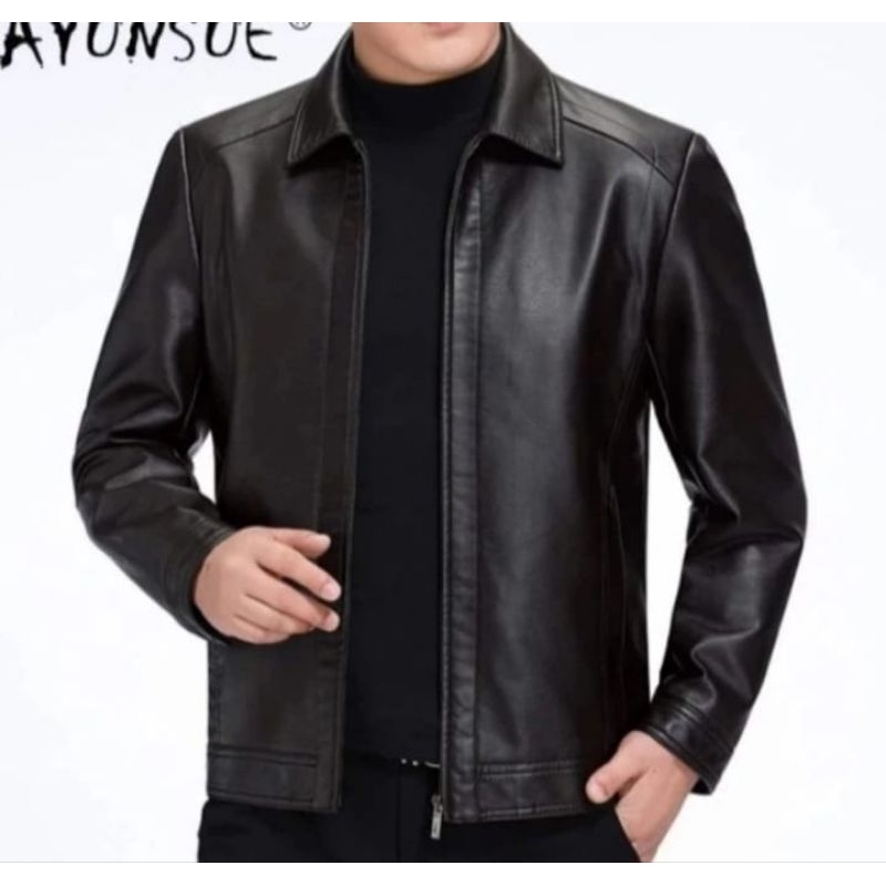 Jaket Kulit Asli Pria Model Kerah Kemeja Anti Api Anti Air New Elegant