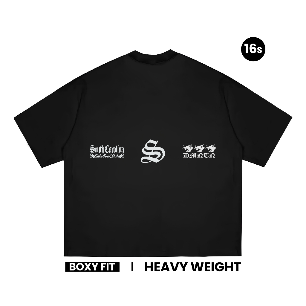 Domination Labs Boxy T-shirt 16s Oversized Kaos Pria Wanita Heavyweight Eastern Black