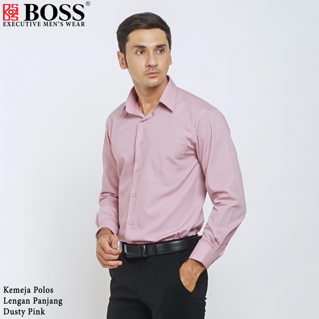 BOSS Kemeja Polos Pria Lengan Panjang Regular Fit Dusty Pink