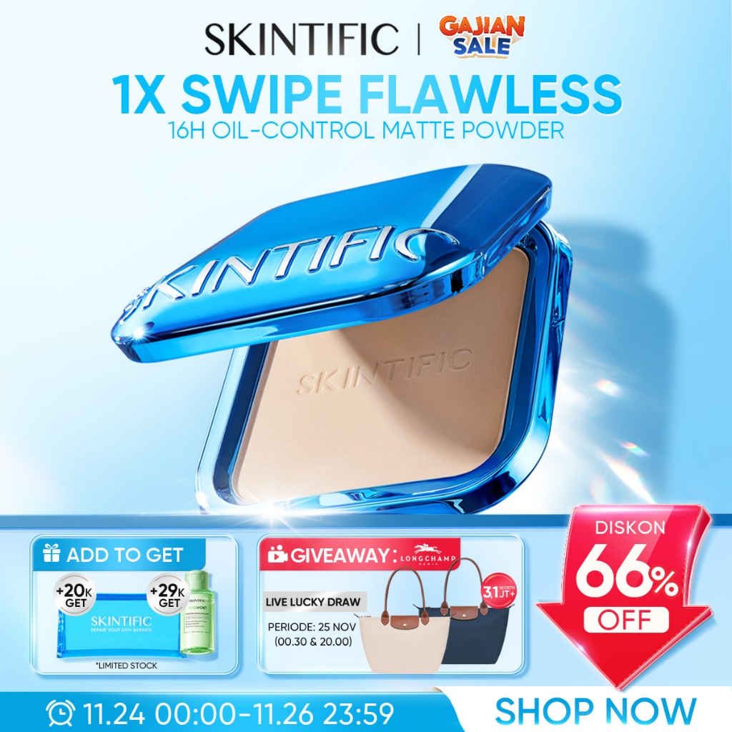 Skintific - Ultra Cover Powder Foundation 9G | Two Way Cake Pressed Powder Matte Bedak Tabur Padat Ori Compact Meratakan