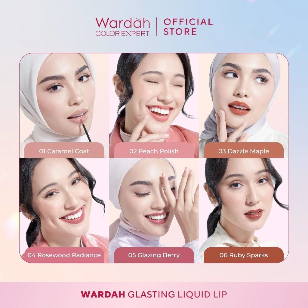 Wardah Glasting Lip Hi Pigmented Glass Color Proof Lip Cream Lipstick Cair Lip Glass Krim Pewarna Bibir Gloss Finish Li