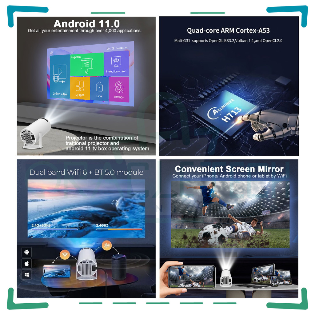 Android Smart Proyektor HY300 4K UltraHD 5G Connection Bluetooth Bisa Netflix Youtube TV Home Theatre Projector