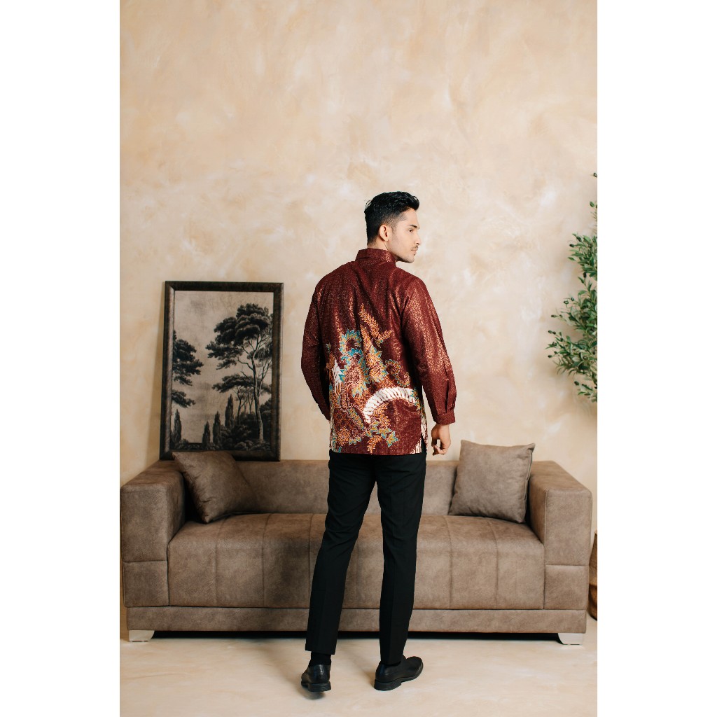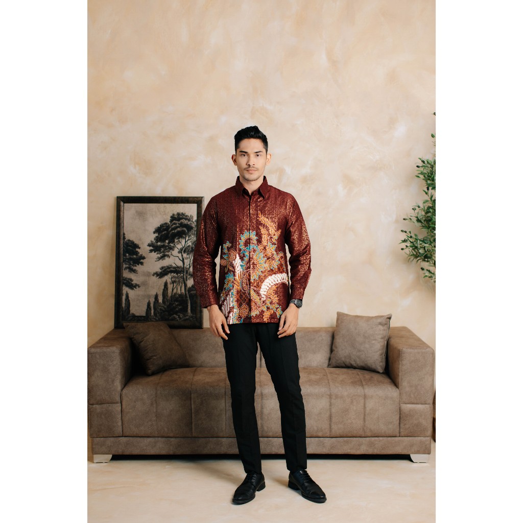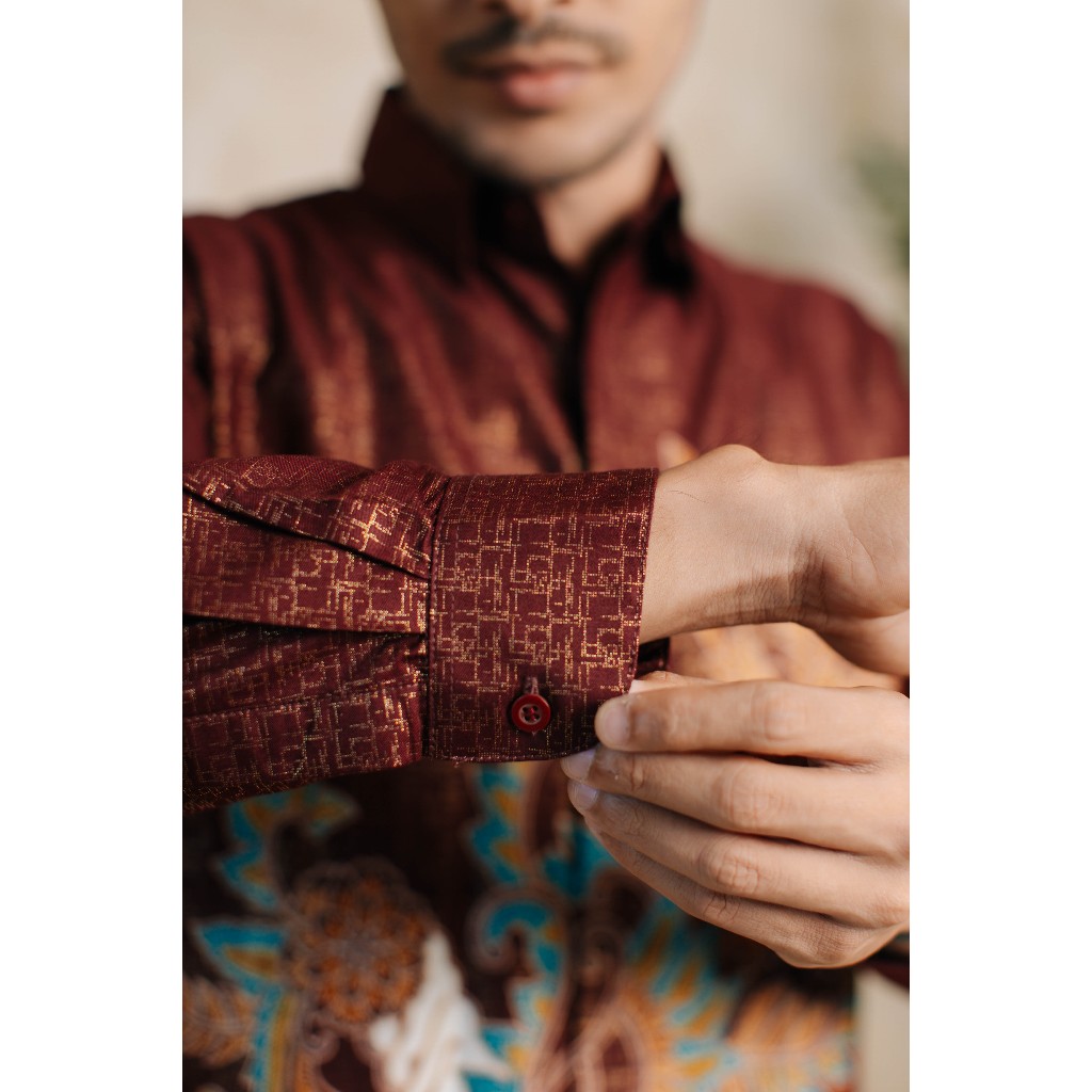 Adyatma Adhiwangsa Maroon Kemeja Batik Pria Furing Reguler Fit Lengan Panjang Katun Foil