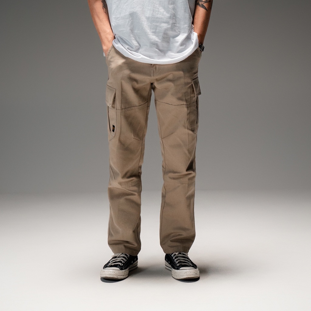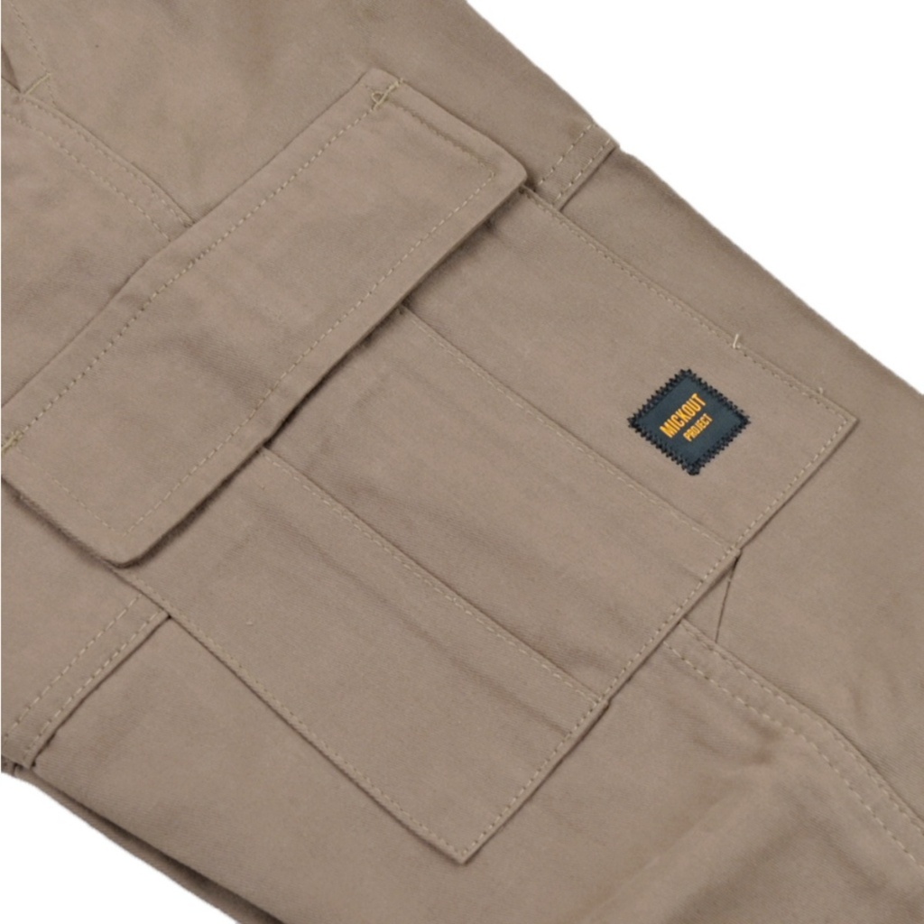 Mickout Slava Cargo Pants - Celana Panjang Pria Rigid Cotton Straight Fit - Khaki