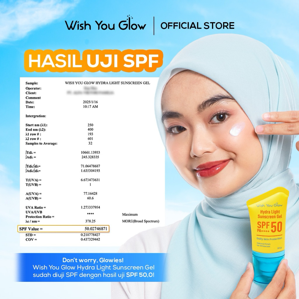 Wishyouglow - Hydra Light Sunscreen Gel Spf 50 Pa++++ Oil Control Cepat Menyerap Ringan