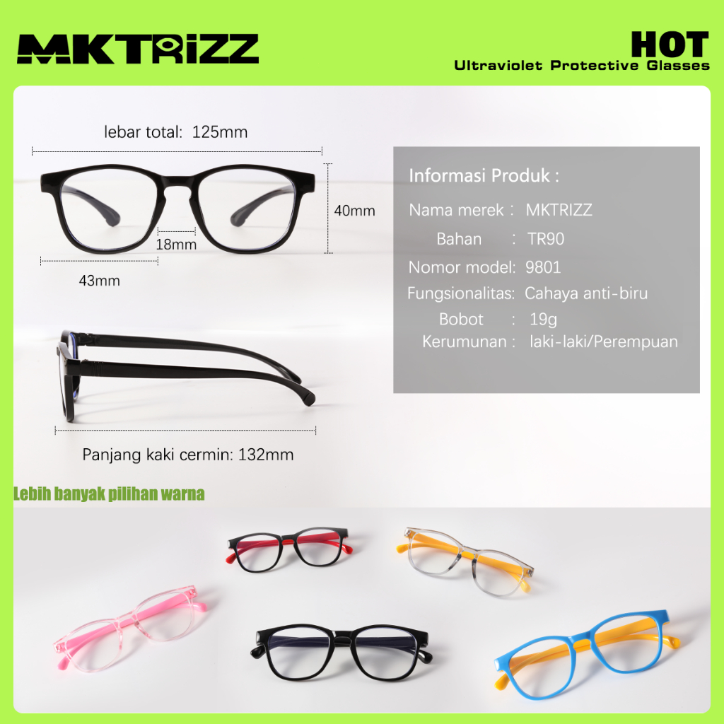 MKTRIZZ Kacamata Anak Anti Radiasi Photochromic Kacamata Minus Blueray Bluecromic BulatPersegi TR90