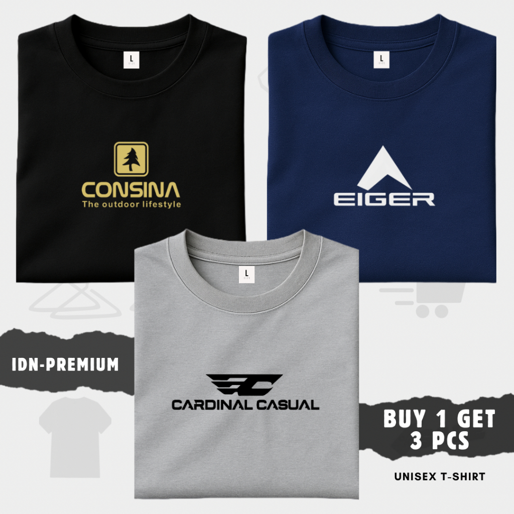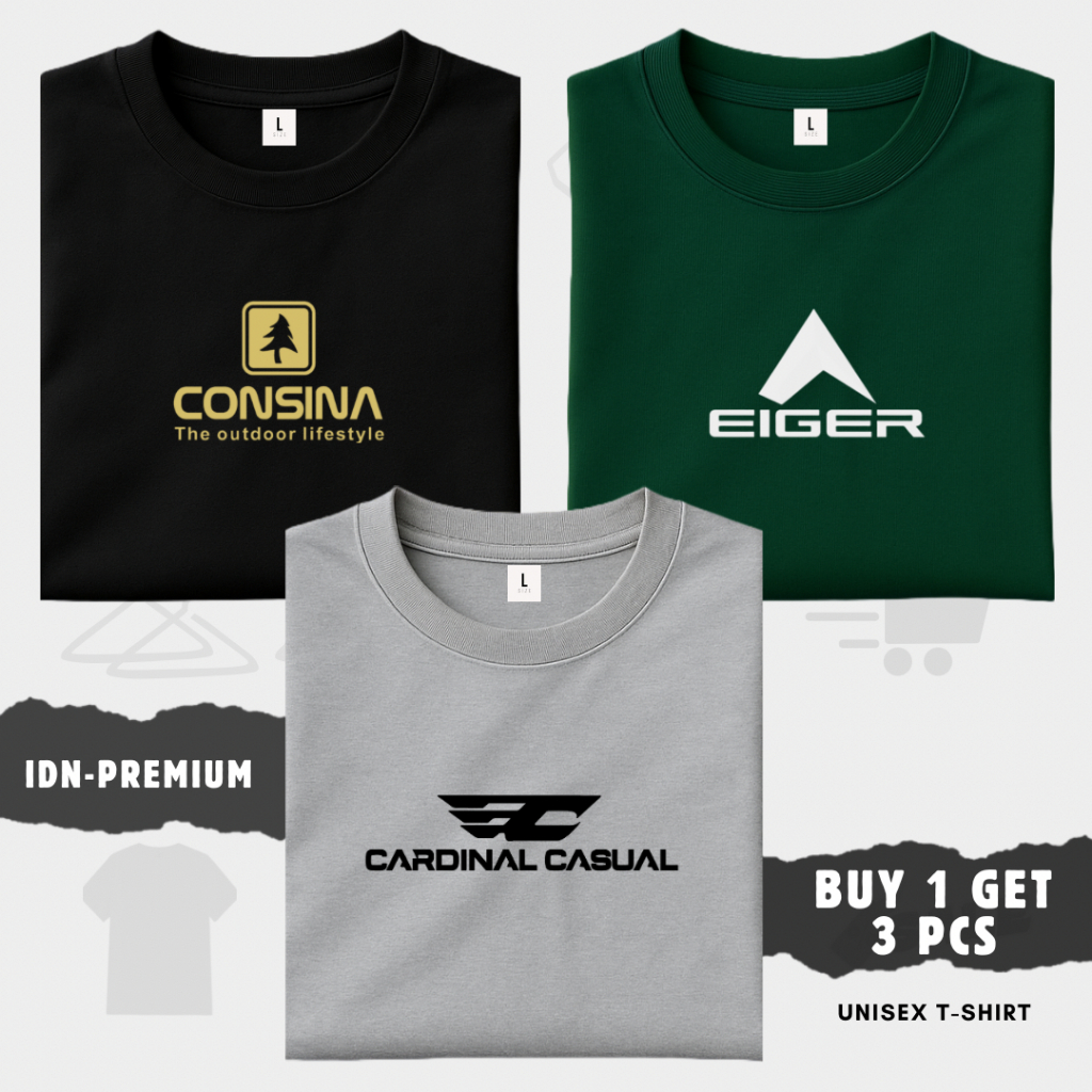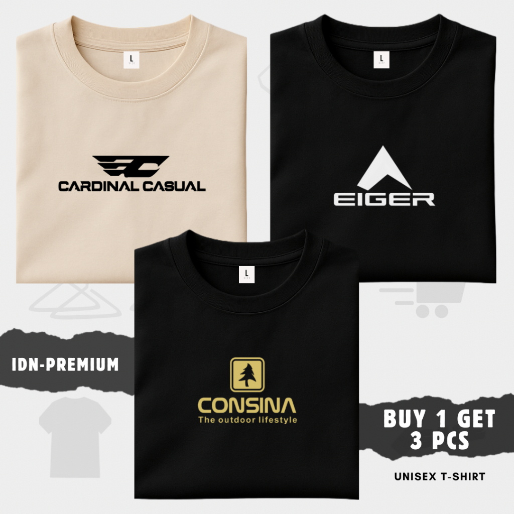 But 1 Get 3 - IDN Kaos Distro Pria Wanita TShirt Motif Lengan Pendek - CSN Gold - Logo ElG A Putih- CardCas Black | Branded