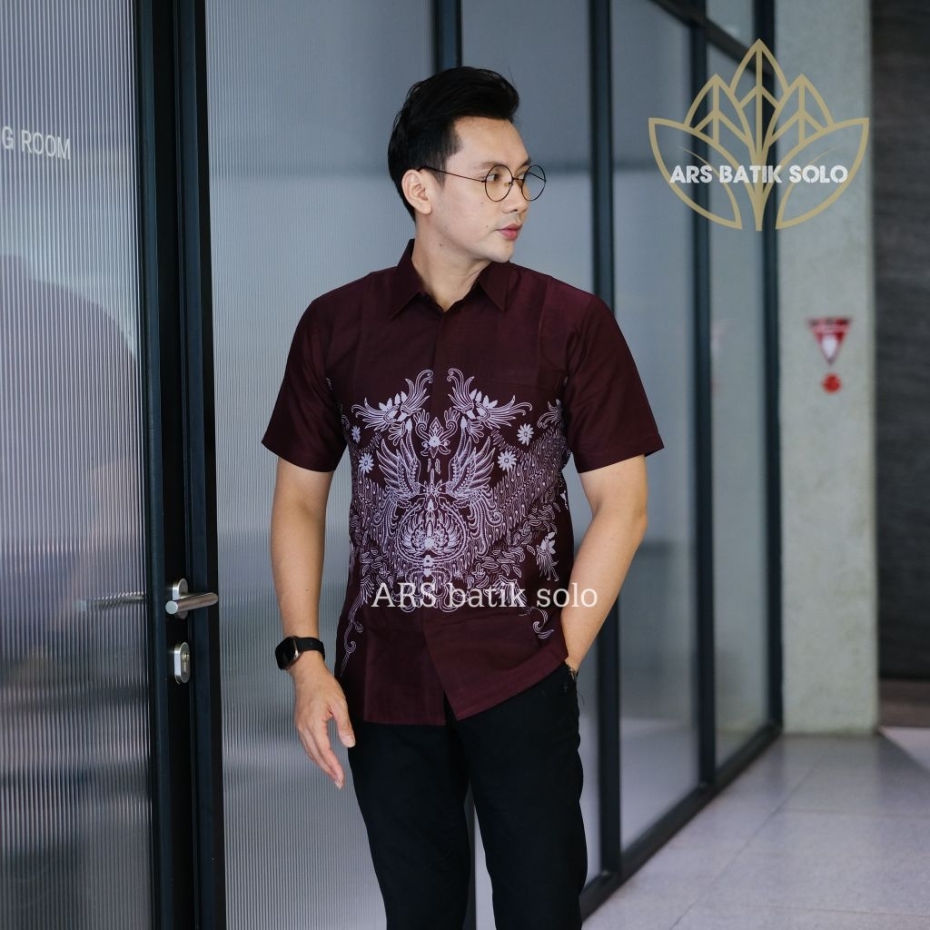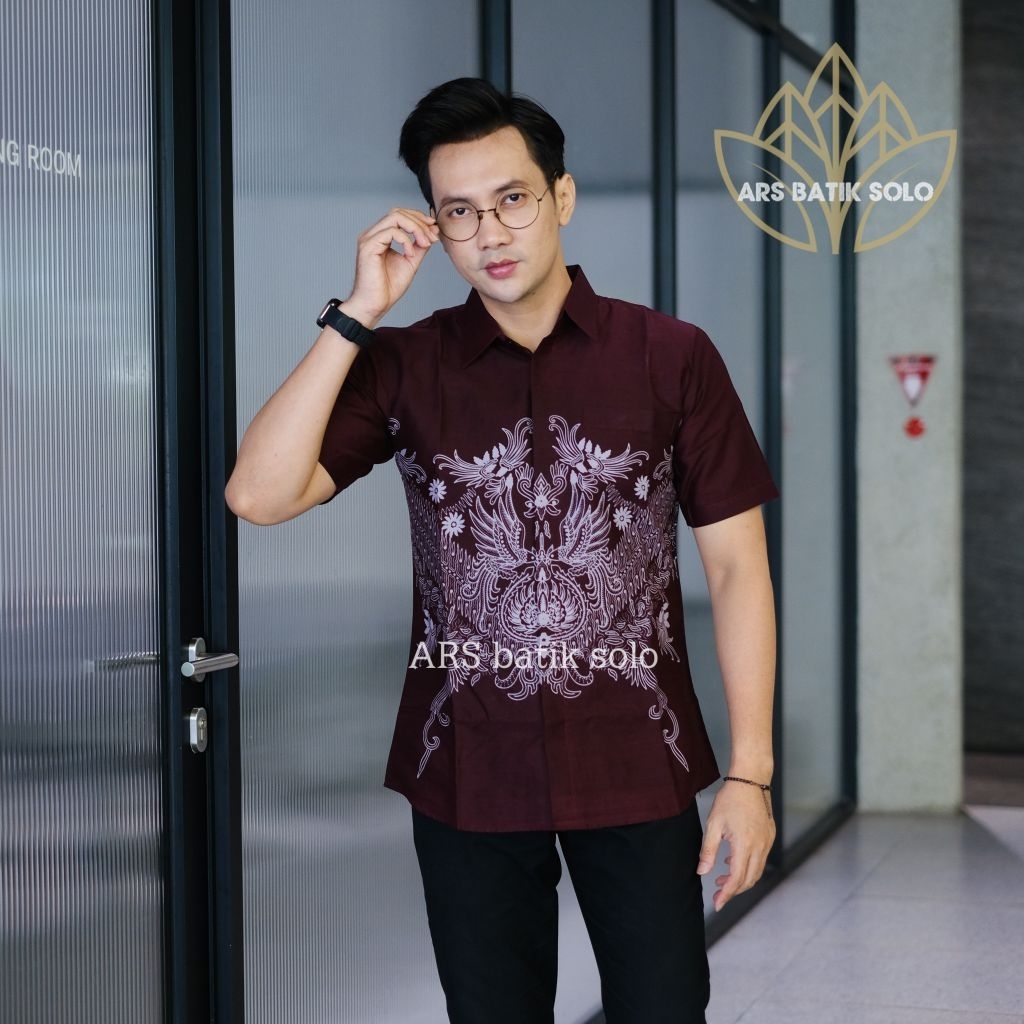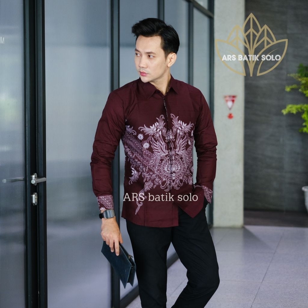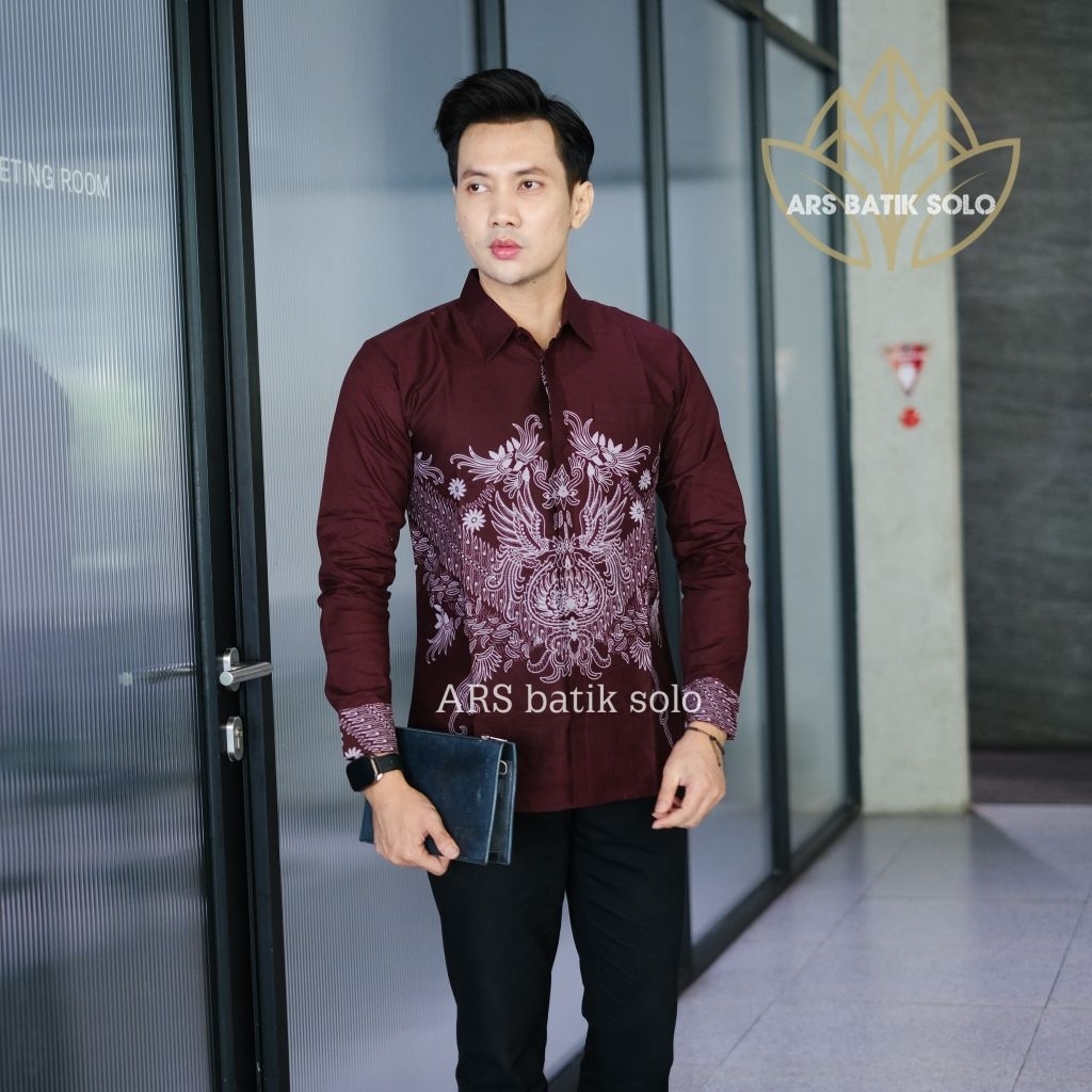 Batik ARS motif RENJANA BURGUNDY Kemeja batik pria SLIMFIT lengan panjang pendek bahan katun premium
