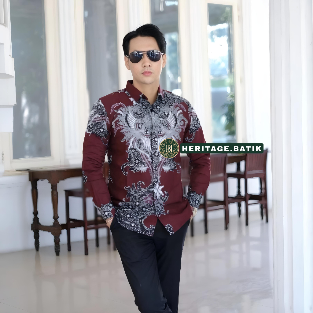 Kemeja Batik Pria MERAH BURGUNDY SLIM FITT Lengan Panjang Best Seller motif kece keren TERBARU & TERLARIS,TERMURAH
