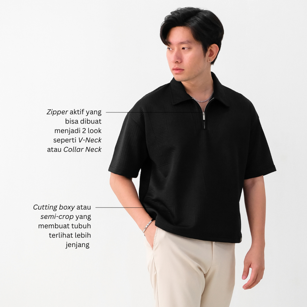 SANVANINA Zuma Zipper Boxy Polo Shirt | Kaos Polo Knit Pria | Atasan Pria Berkerah Boxy Fit Cutting