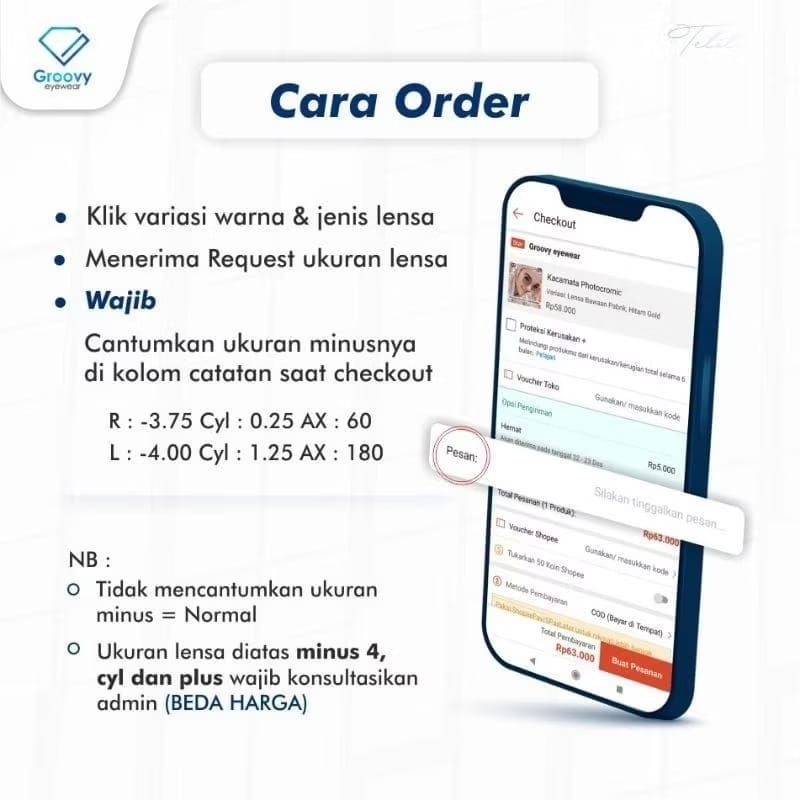 Kacamata saja, Paket Antiradiasi, Paket Blueray, Paket Photocromic, Paket Blueycromic