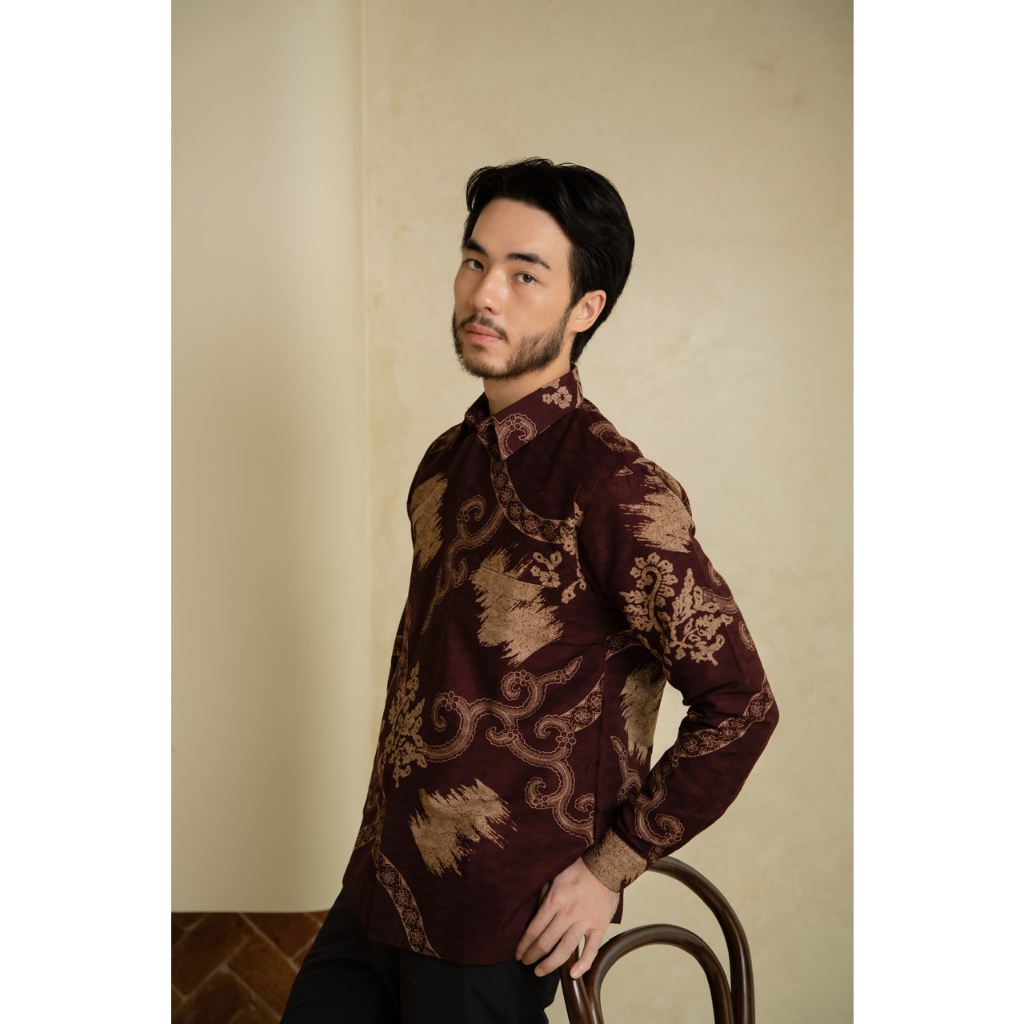 Batik Ayman - WICAKSANA MAROON LENGAN PANJANG | Kemeja Batik Pria Katun Dobby / Doby Premium Lengan Panjang