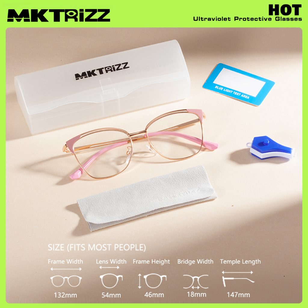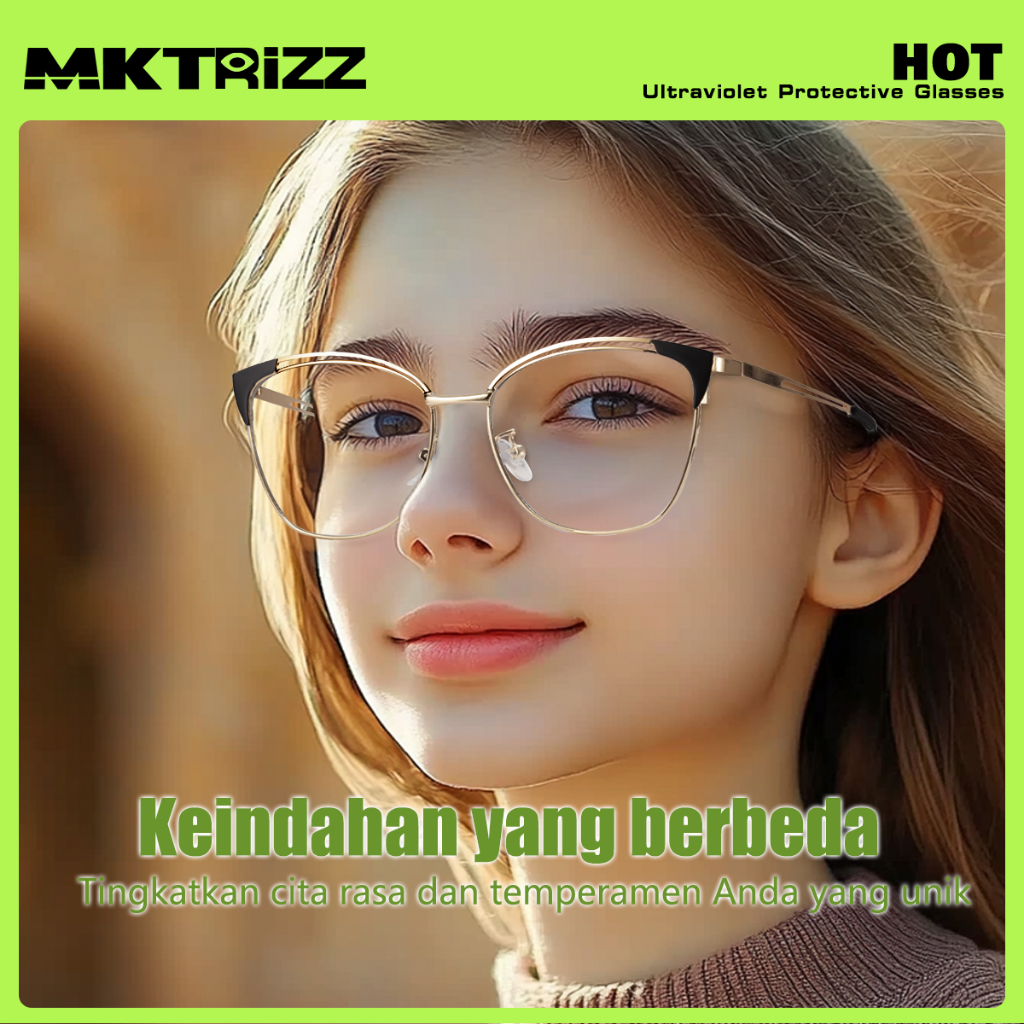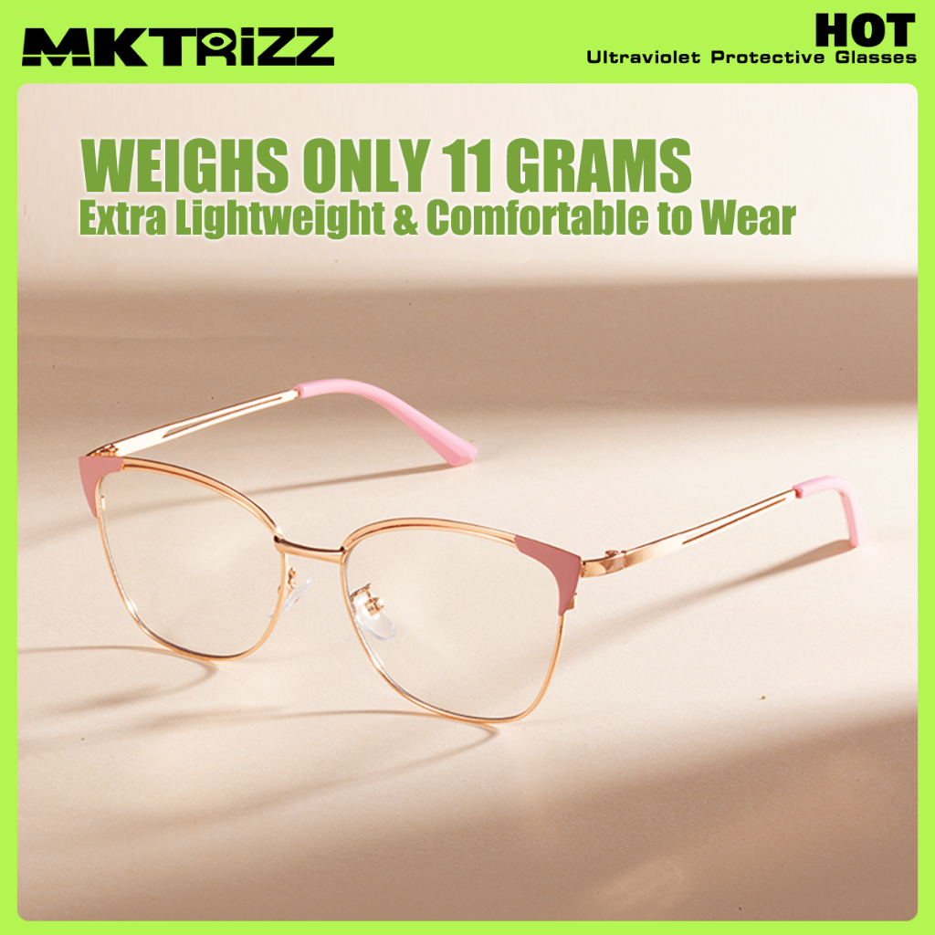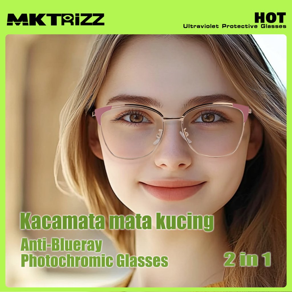 MKTRIZZ Kacamata Cat Eye Wanita Photocromic Anti Radiasi Blueray 3 in 1 MinusMerah Muda
