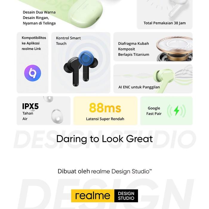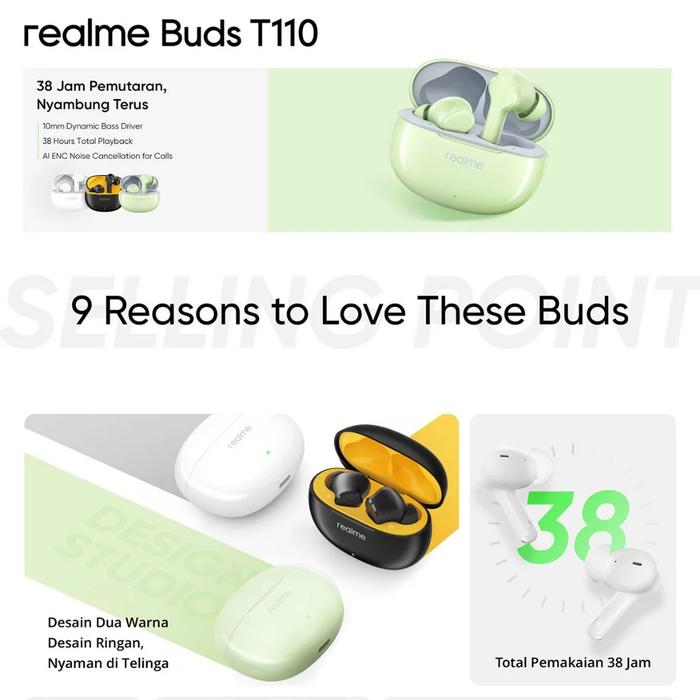 realme Buds T110 - AI ENC Noise Cancellation for Calls - 38 Hours Total Playback - IPX5 Anti Air - tws realme buds