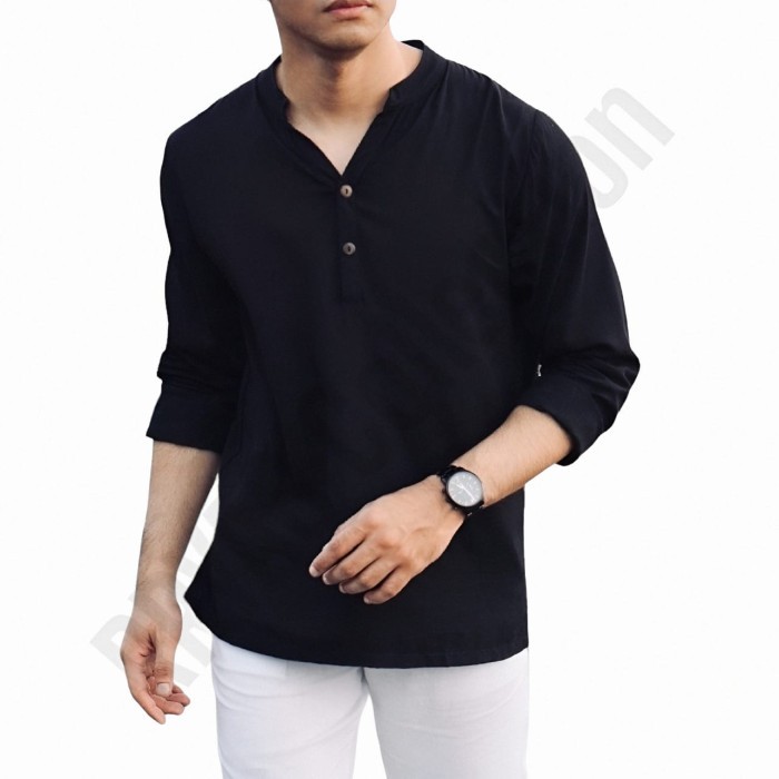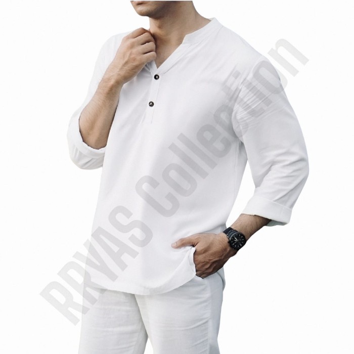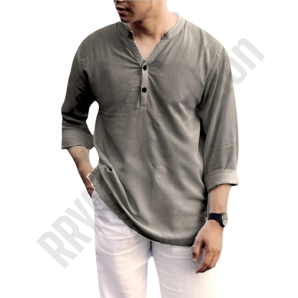 Kemeja Pria Lengan Panjang Basic Casual Vintage Formal Katun Rayon Twill Nyaman Lembut S - XXXL