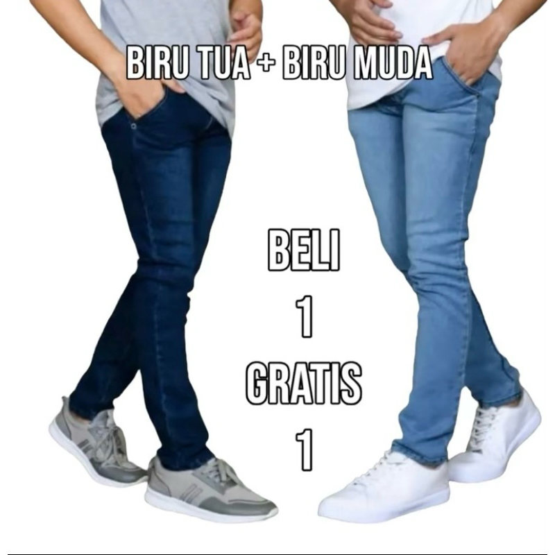 Promo Beli 1 Gratis 1 Celana Jeans Pria Slimfit