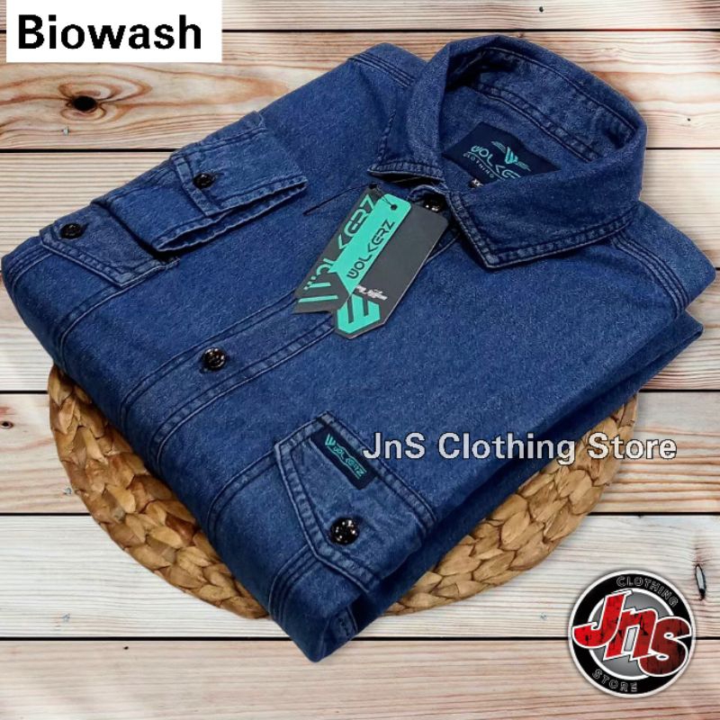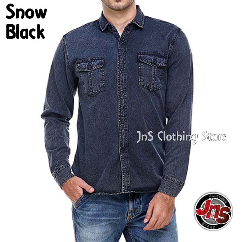 Baju Kemeja Hem Denim Jeans Pria Lengan PANJANG Premium Distro Casual Shirt Snow Atasan Polos - JnS