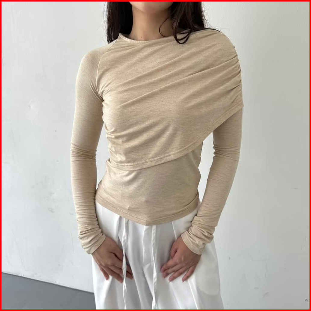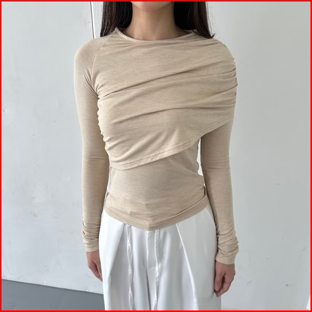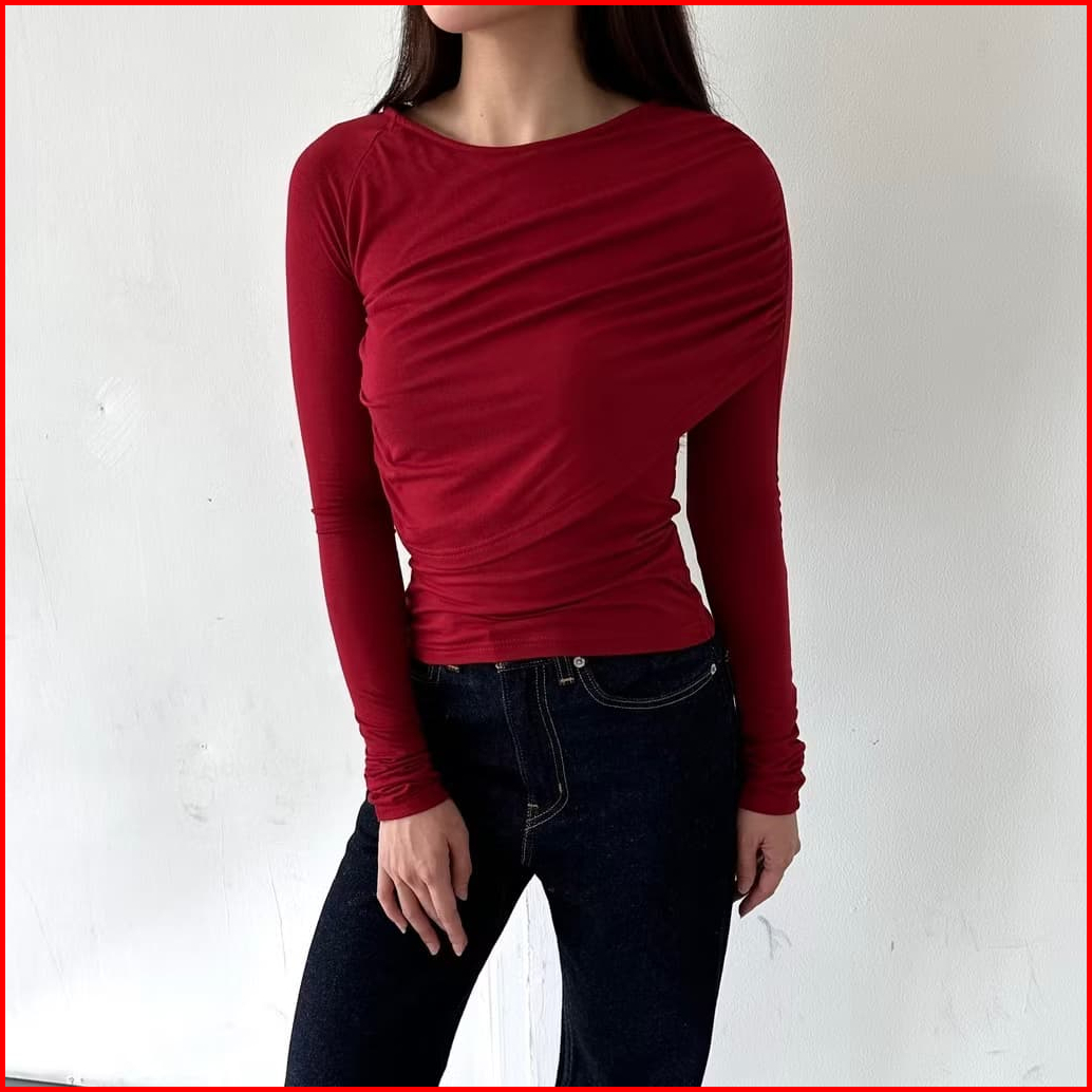 Peggy Top - Atasan Wanita Lengan Panjang Kaos Korean Top Basic Baju Summer Knit Rib Long Short Sleeve