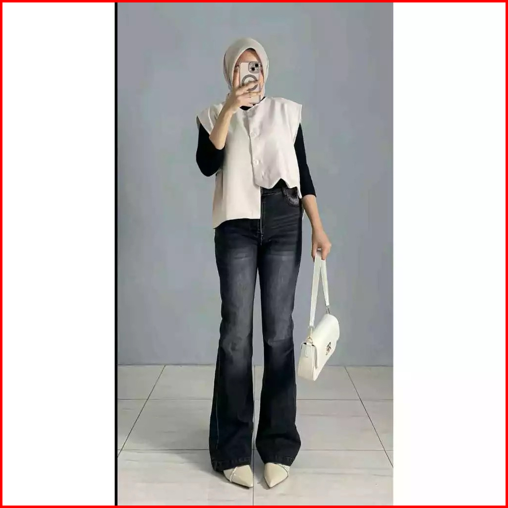 Highwaist Cutbray Jeans Retro - Celana Jeans Cutbray Whisker Premium Wanita Premium Wanita Stretch