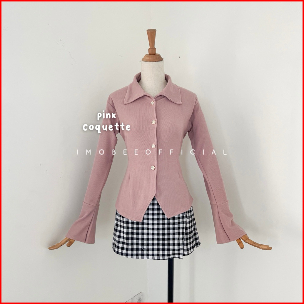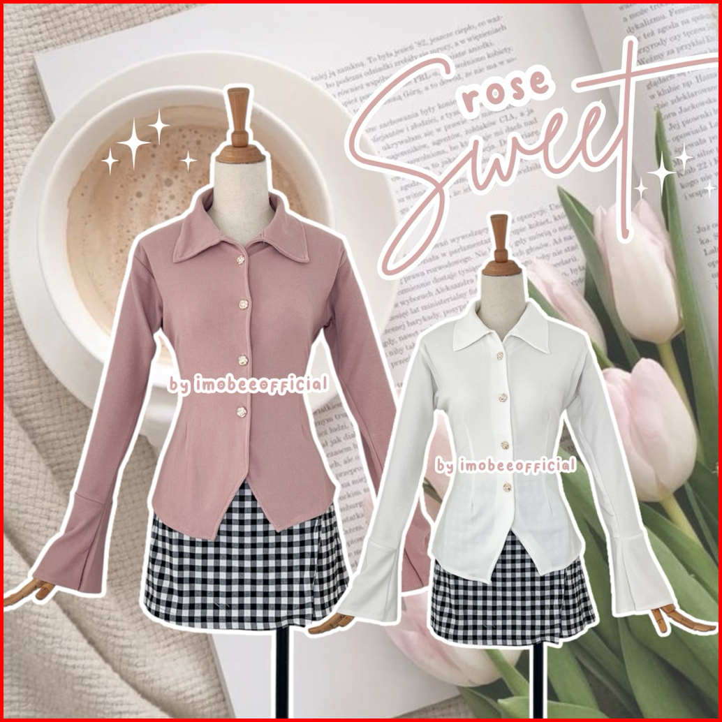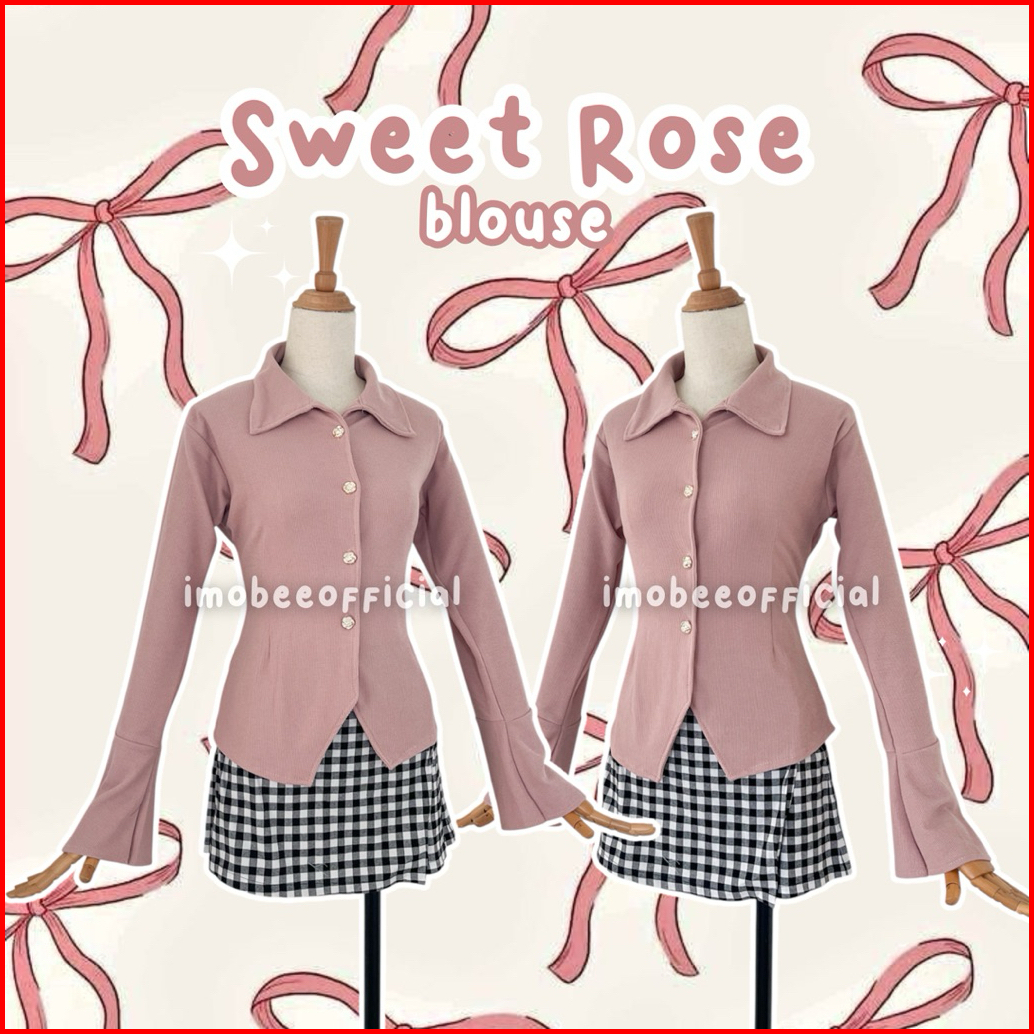 Imobeeofficial Sweet Rose Blouse Kemeja Wanita Knit Slimfit Kancing Mawar Atasan Top Vintage Aesthetic Korea