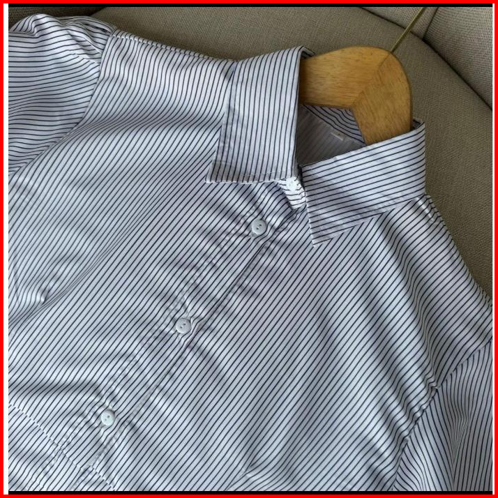 Kemeja Stripe Rempel Fit Body Wanita Casual Daily Formal - Kemeja Stripe Rempel Korean Look Fitted Shirt - Atasan Wanita