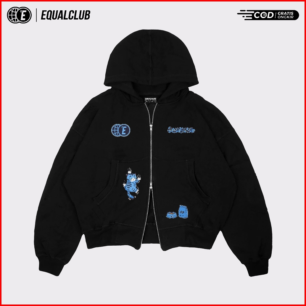 Equalclub - Boxy Zipper Confused Sweater Hoodie Double Zipper Oversize Pria Wanita Fleece