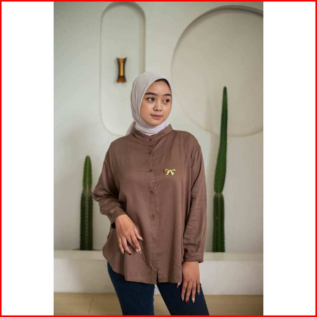 Kemeja Rayon Twill Blouse Ryon Twill Lengan Panjang Kemeja Basic Harian