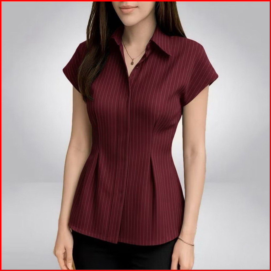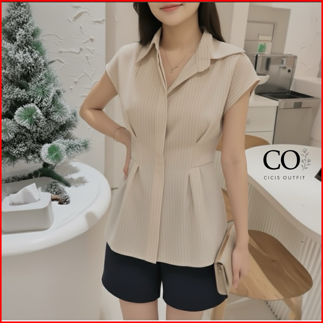 Kemeja Wanita Salur Alba Top Stripe Fitted Lengan Pendek Casual Alba Top Shirt Kemeja Garis - Garis Kemeja Salur Wanita