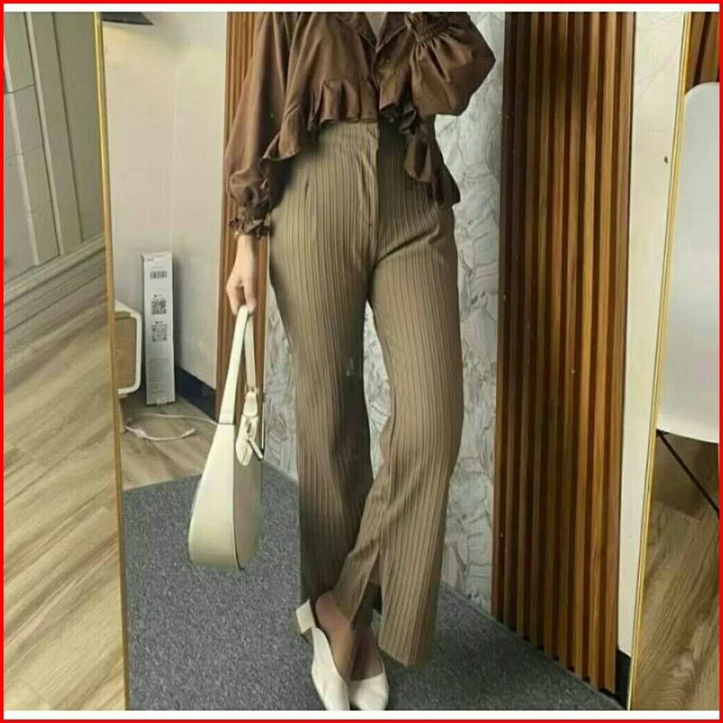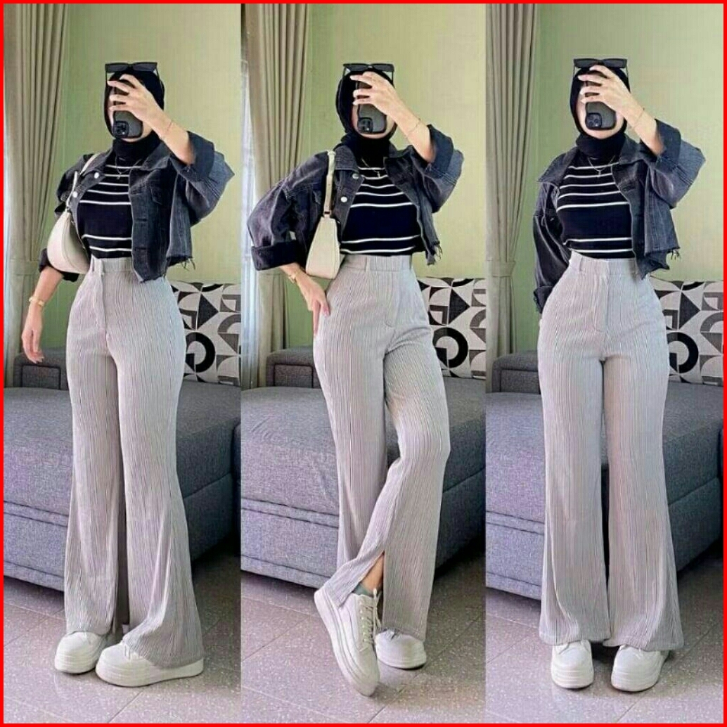 Yuso - Cutbray Knit Celana Wanita Cutbray Knit Premium Highwaist Kekinian