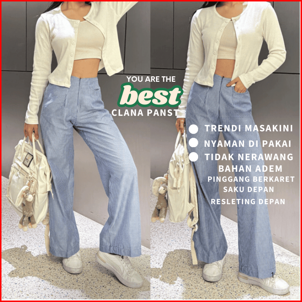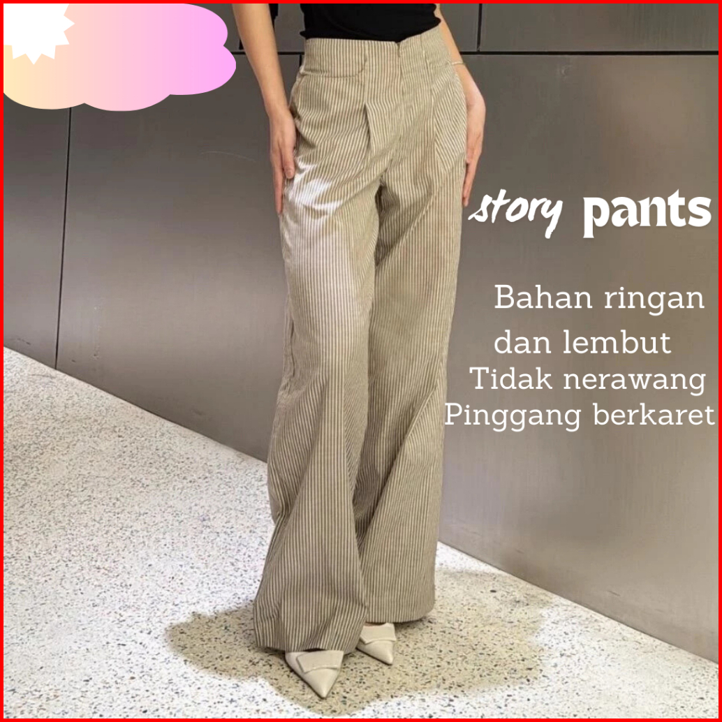 Pants Terbaru Celana Tidur Panjang Wanita Kantor Kuliah Kerja Motif Garis Salur Kulot Pinstripe Salur Korean Sity Kekini