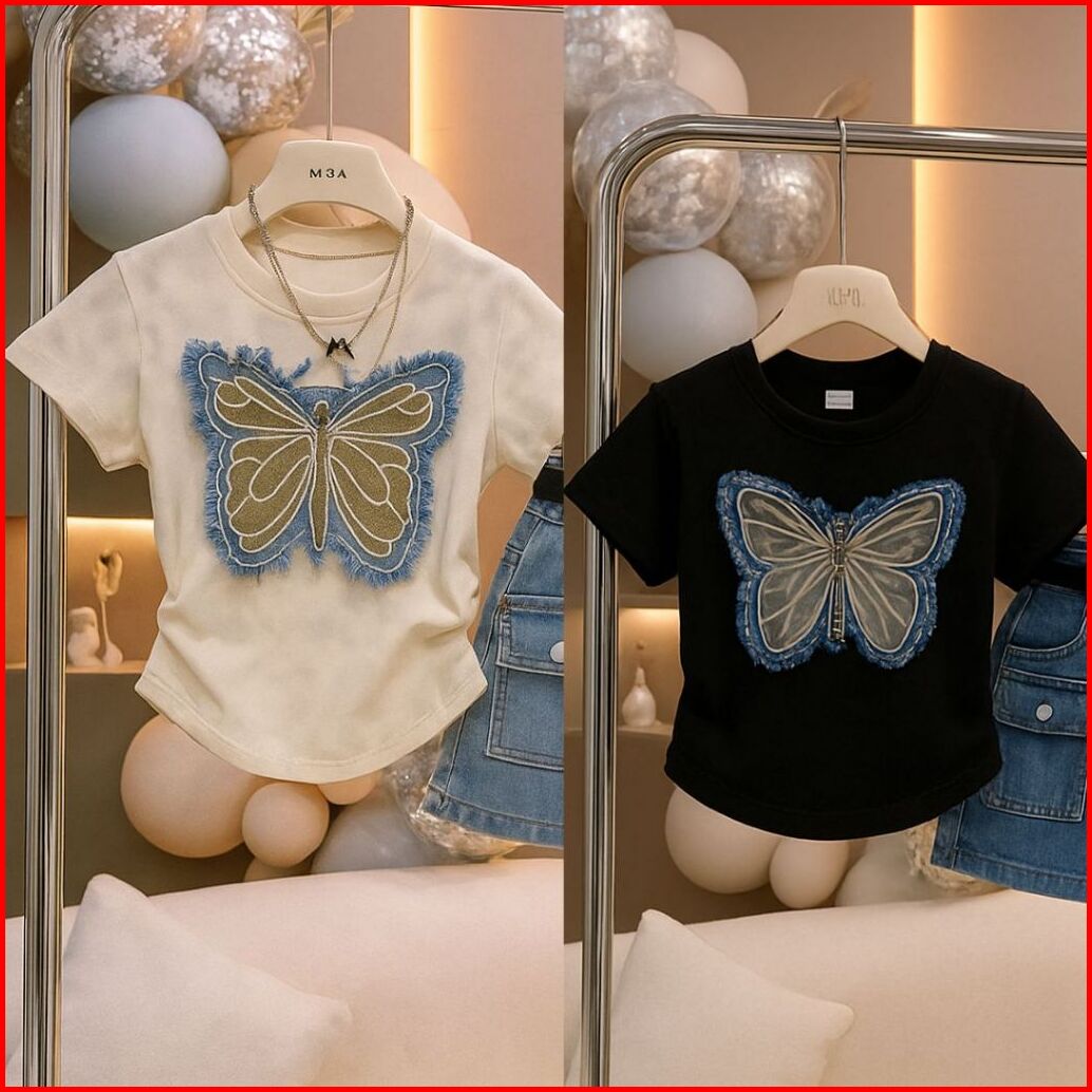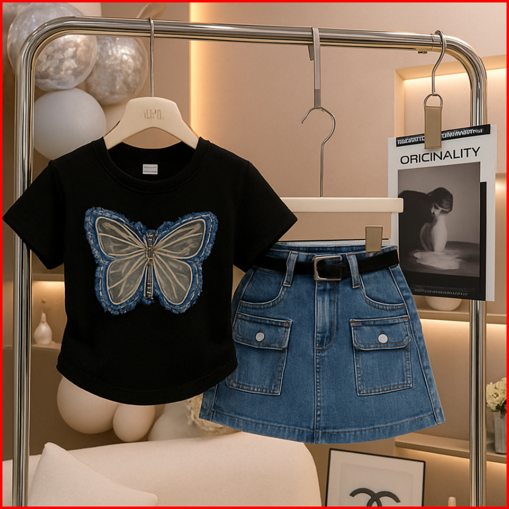 Setelan Anak Perempuan Model Rok Denim Umur 1-5 Tahun Bahan Kaos Adem Dan Nyaman Di Kenakan
