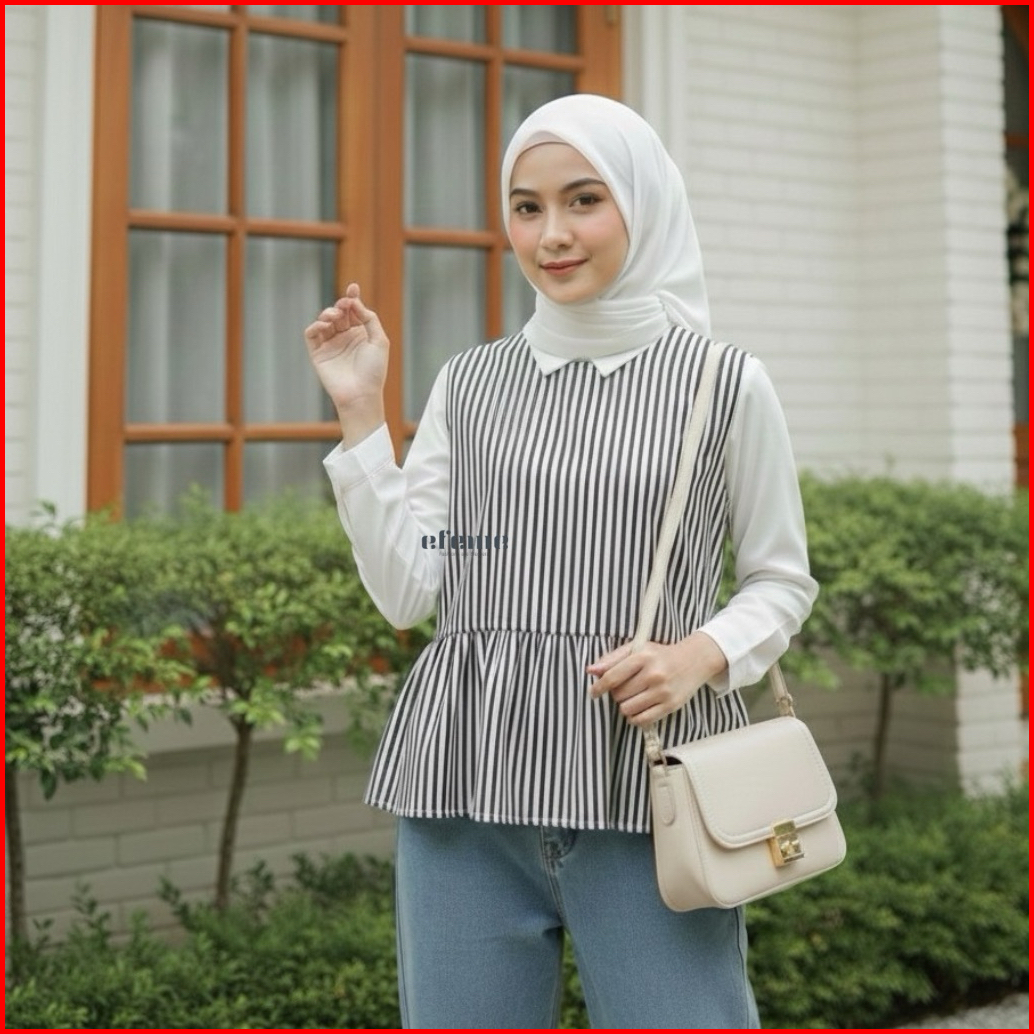 Efeme - Amora Vest Inner Peplum-top Inner Cardigan Stripe Rompi Top Atasan Wanita Korean Style Katun