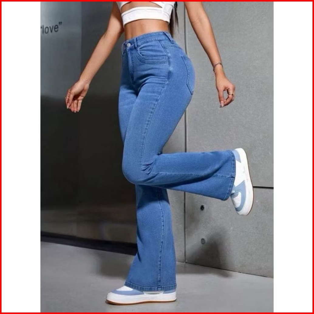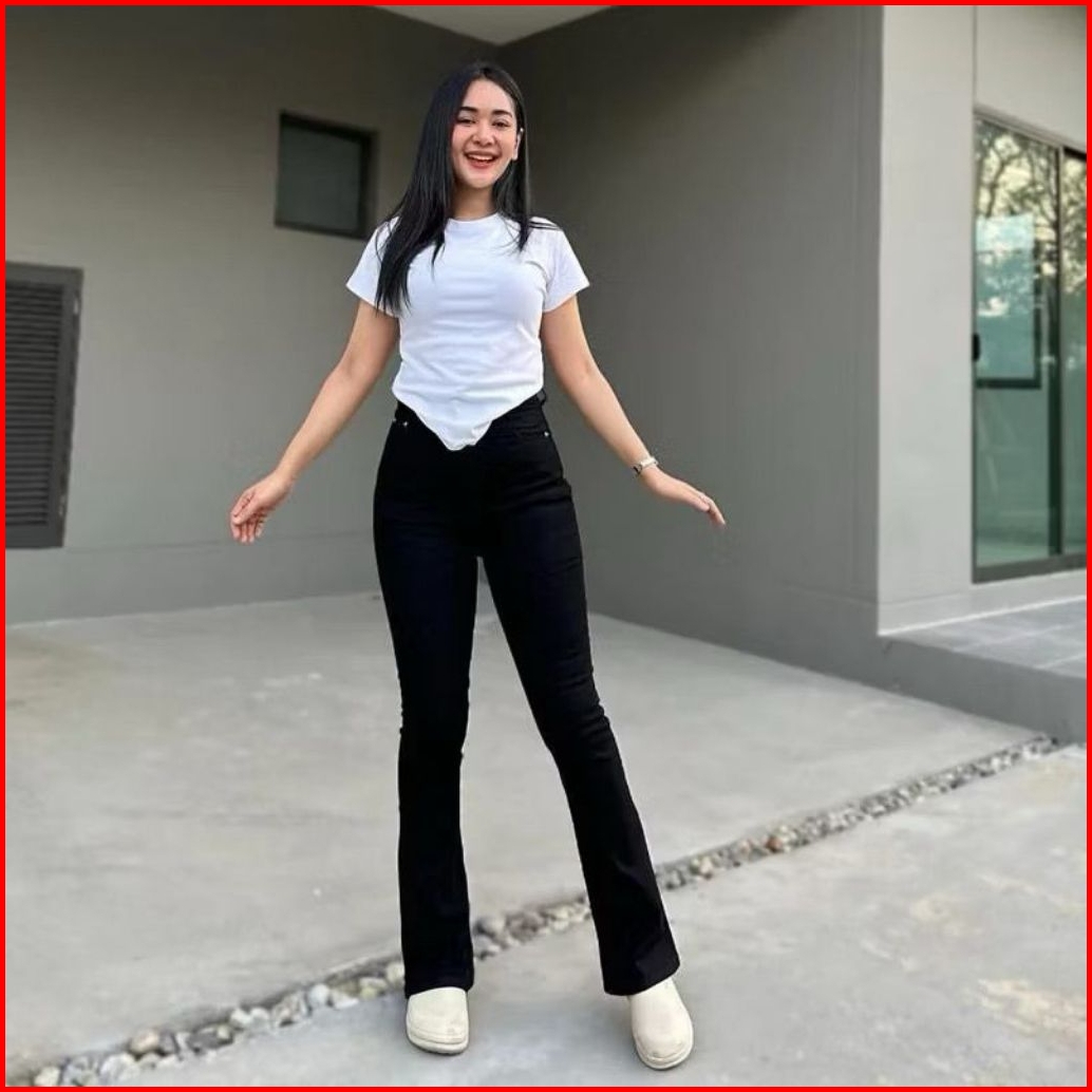 Celana Jeans Cutbray Highwaist Street Wanita Loose Kekinian Ukuran Standar Dan Jumbo