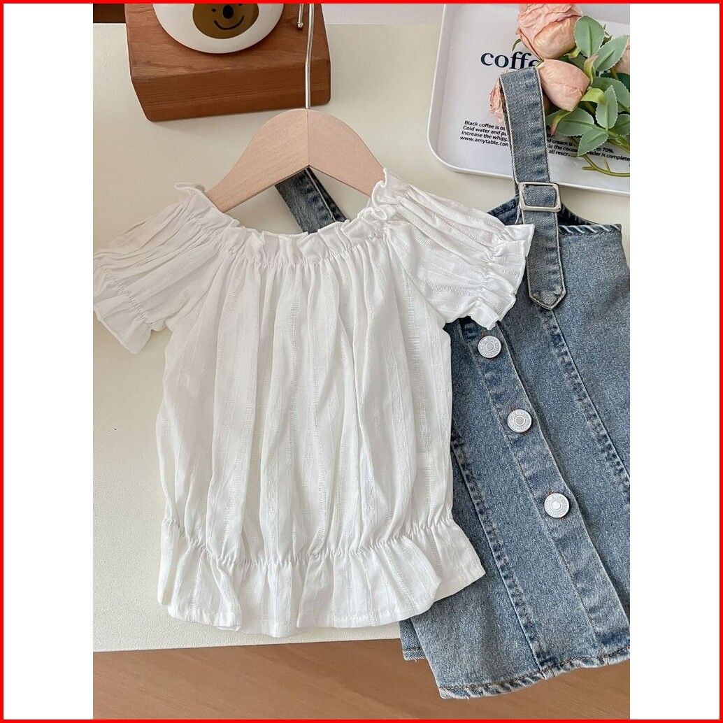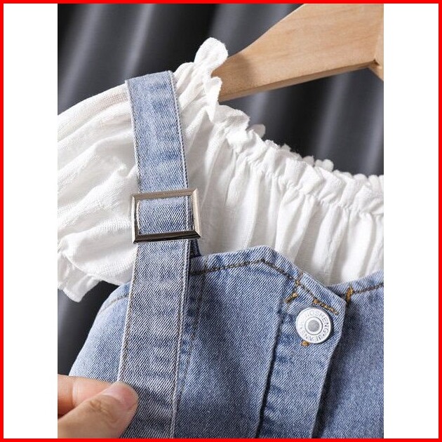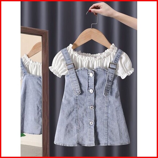 Quenza Setelan Dress Anak Perempuan Jeans Kombinasi Rayon Crinkle Modis Korean Style Usia 1-6 Tahun