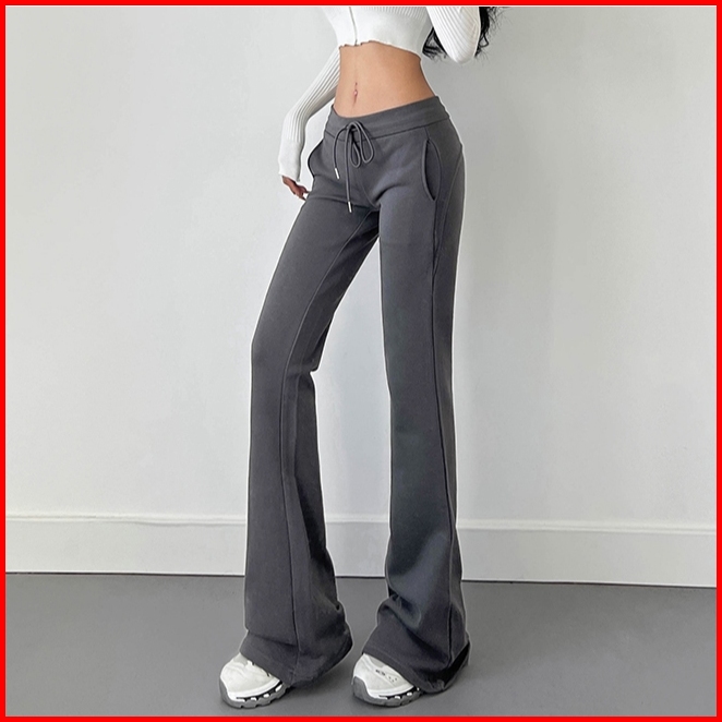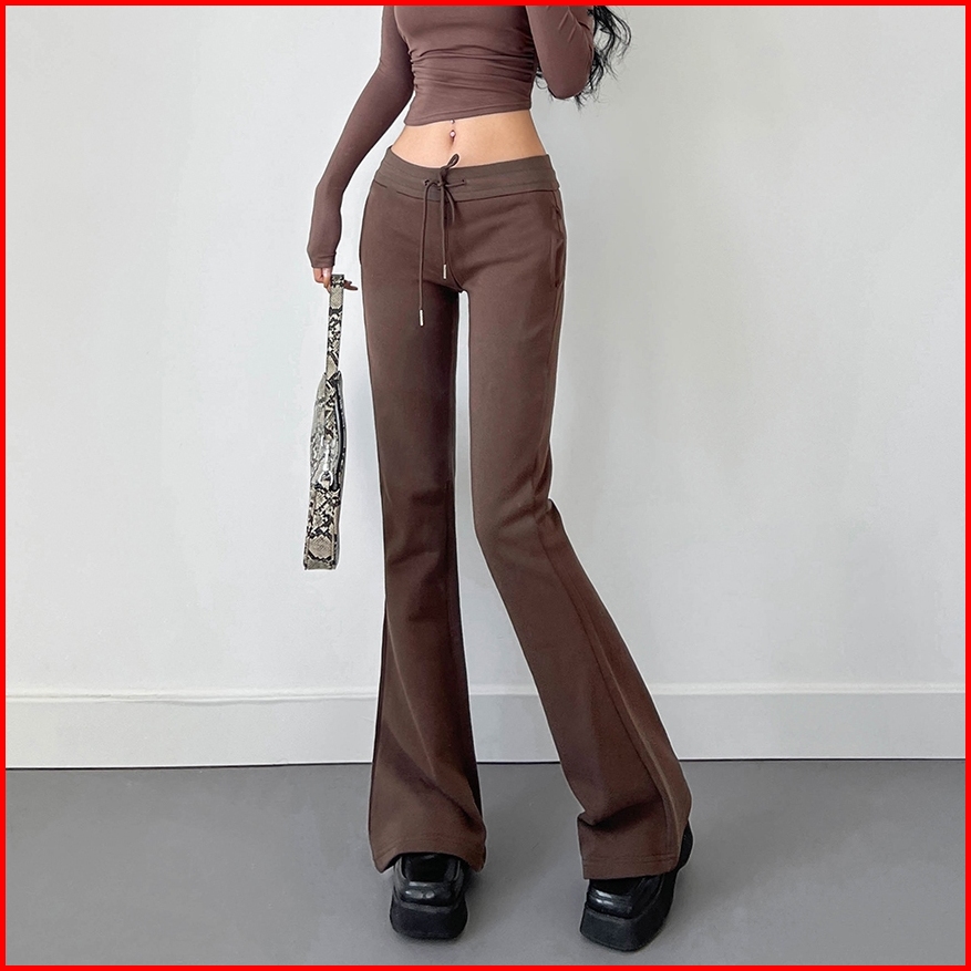 Premium Celana Kasual Micro Flare Pinggang Tinggi Wanita Gaya Korea
