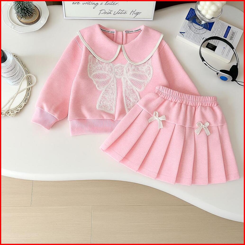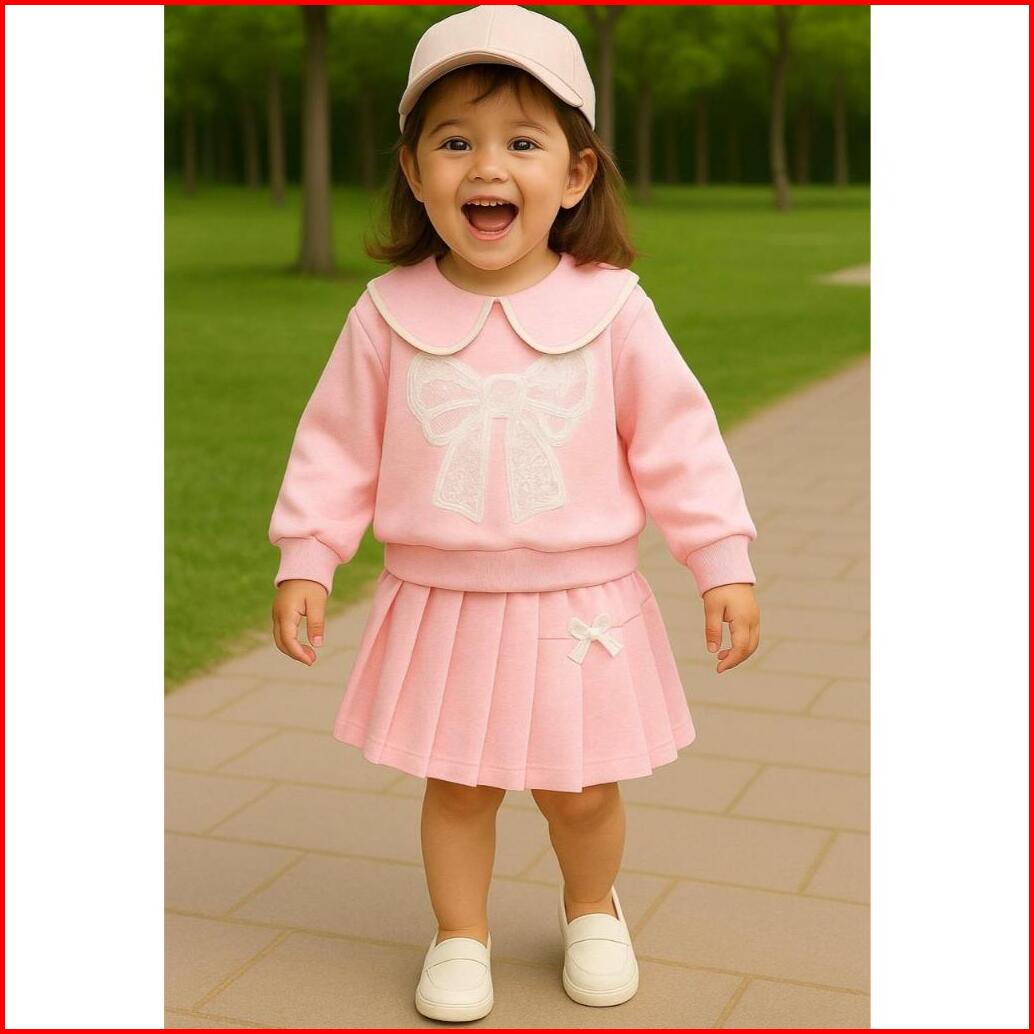 Setelan Baju Anak Perempuan Pita Bawahan Rok Usia 1-6 Tahun Terbaru