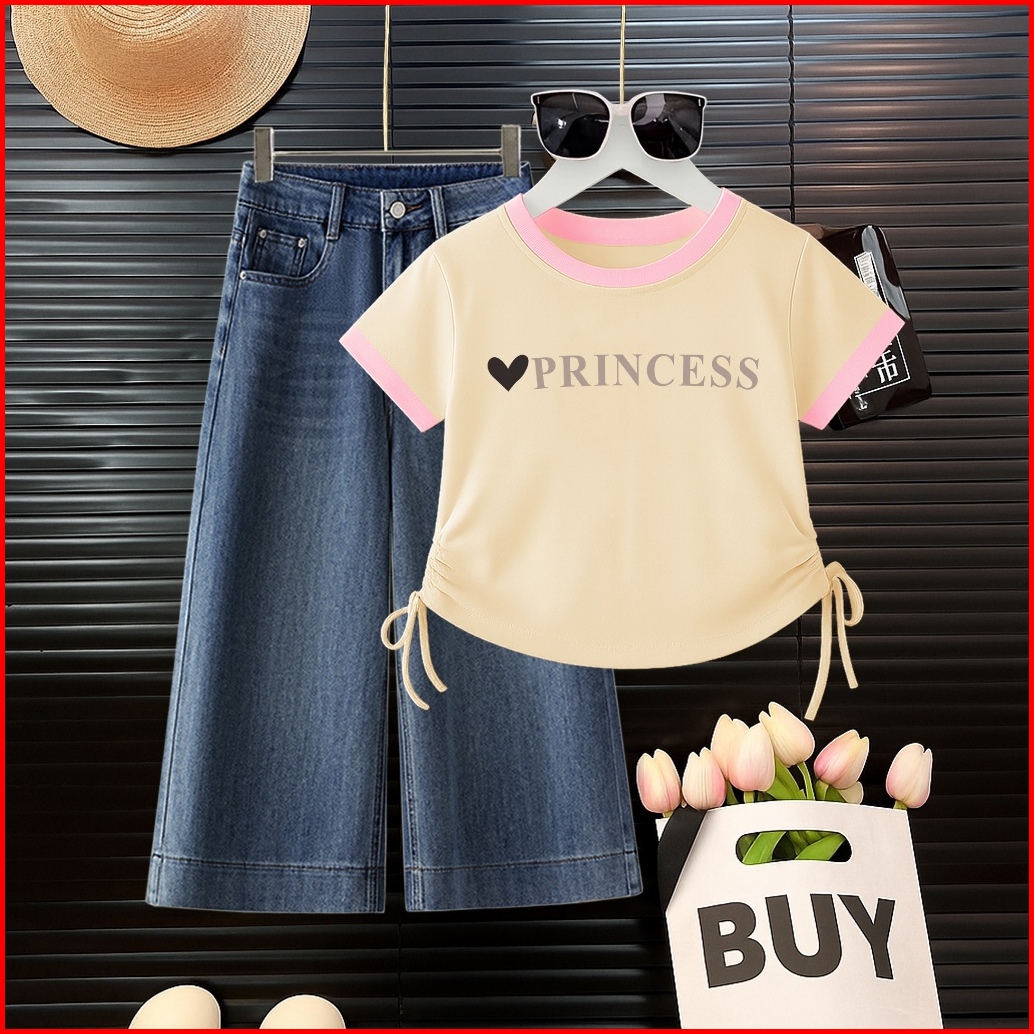 Set Crop Jeans Panjang Anak Perempuan Princesslove Usia 1 2 3 4 5 6 7 8 9 10 11 12 Tahun